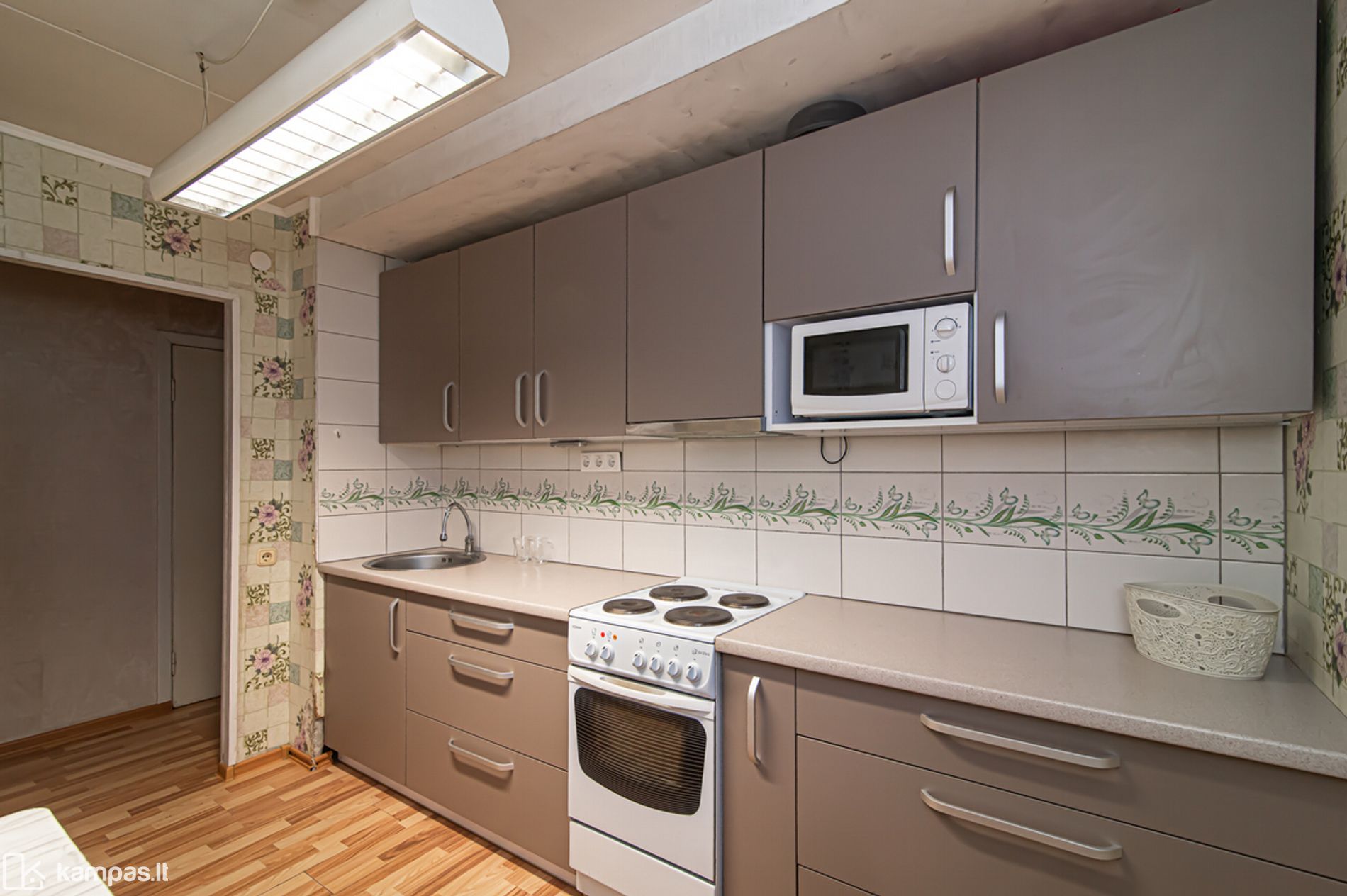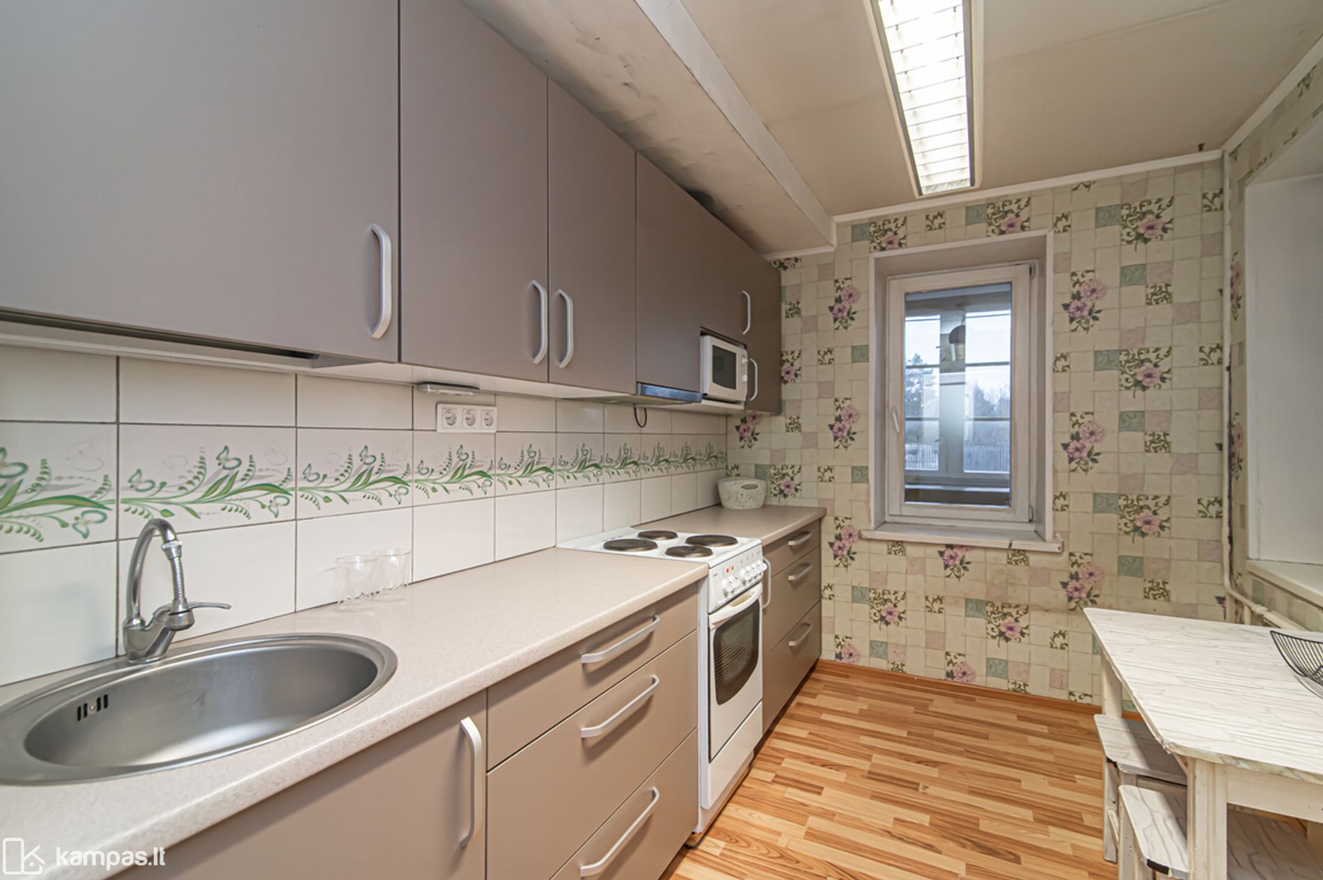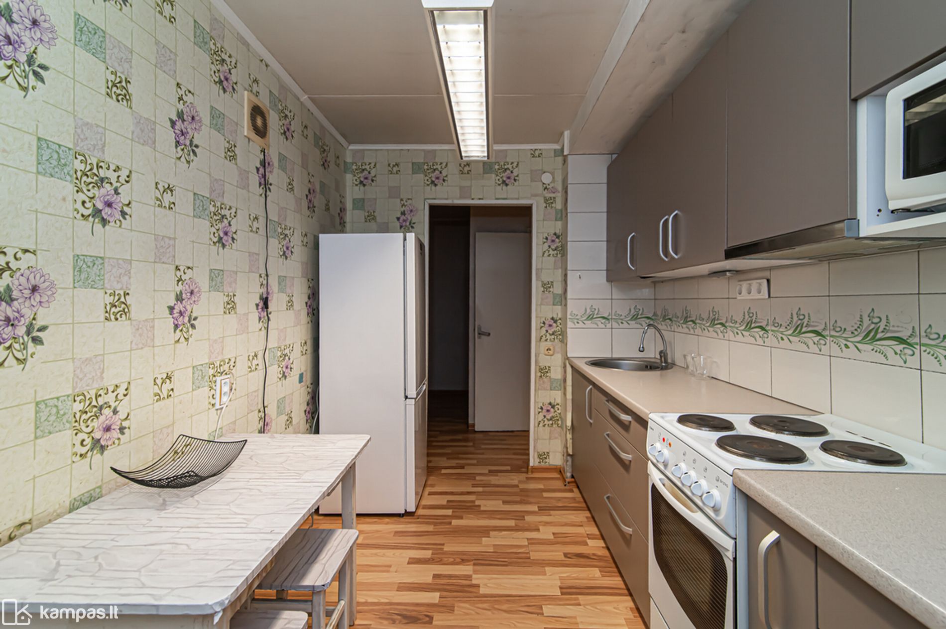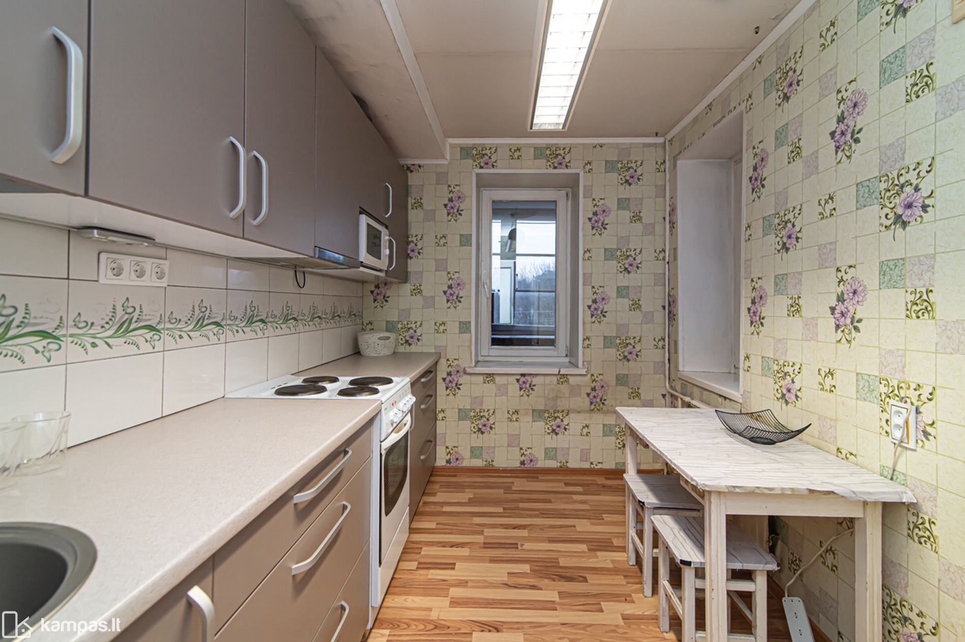 • Grindys – laminatas, plytelės virtuvėje ir vonioje
