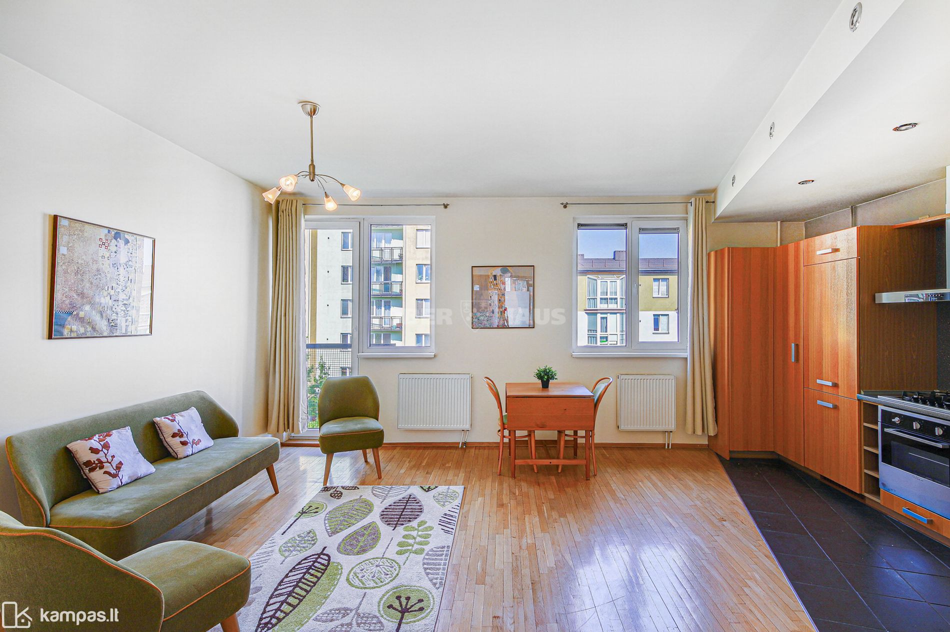 • Kambarių skaičius: 2 (svetainė sujungta su virtuve + atskiras miegamasis);