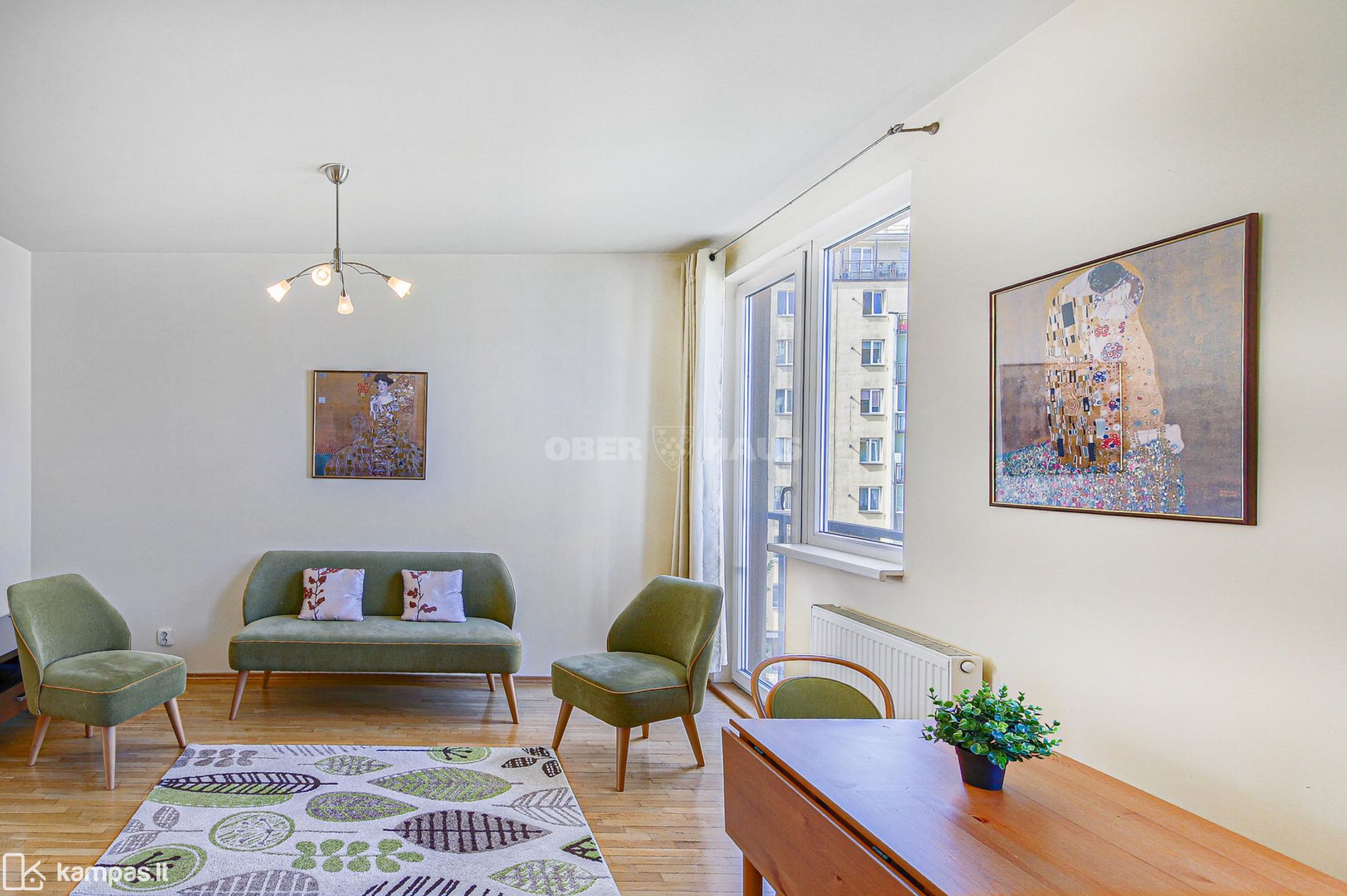 Ąžuolo parketas, dažytos sienos, vonios kambarys su keramika. Įrengta integruota buitinė technika, interneto ir kabelinės TV įvadai.