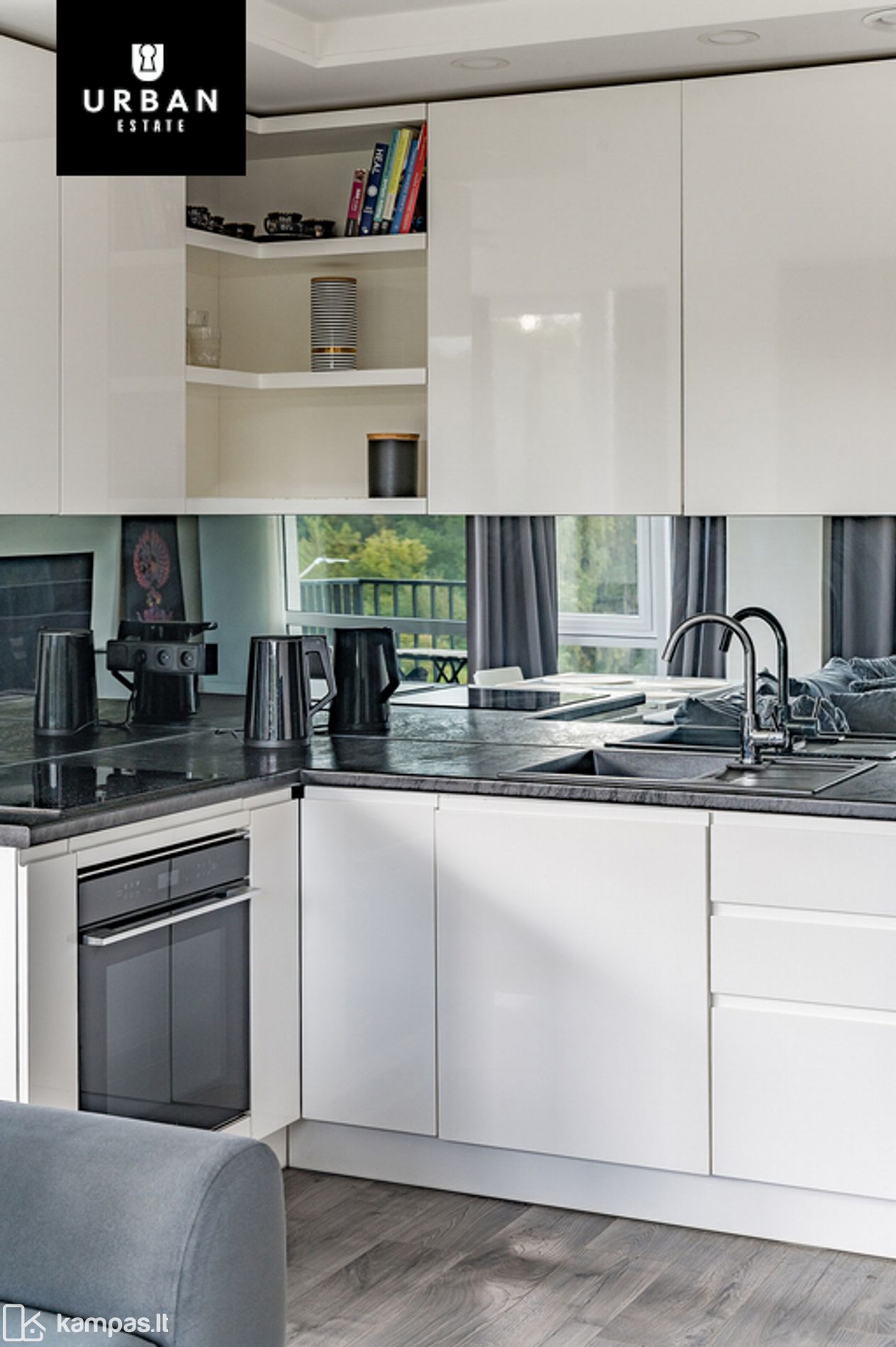 - Dideli vitrininiai langai – daug natūralios šviesos ir gražus vaizdas į žalią aplinką