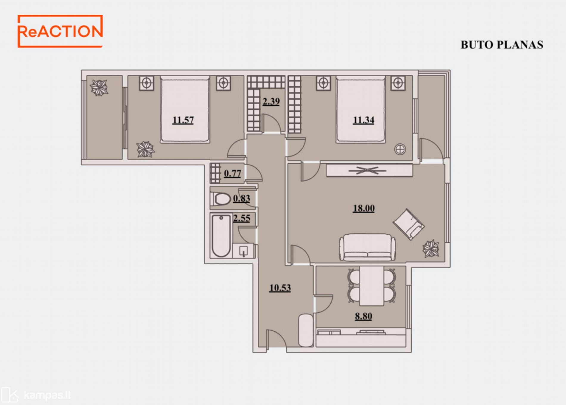 • Puiki orientacija į rytus ir vakarus užtikrina, kad butas būtų šviesus ir šiltas visą dieną