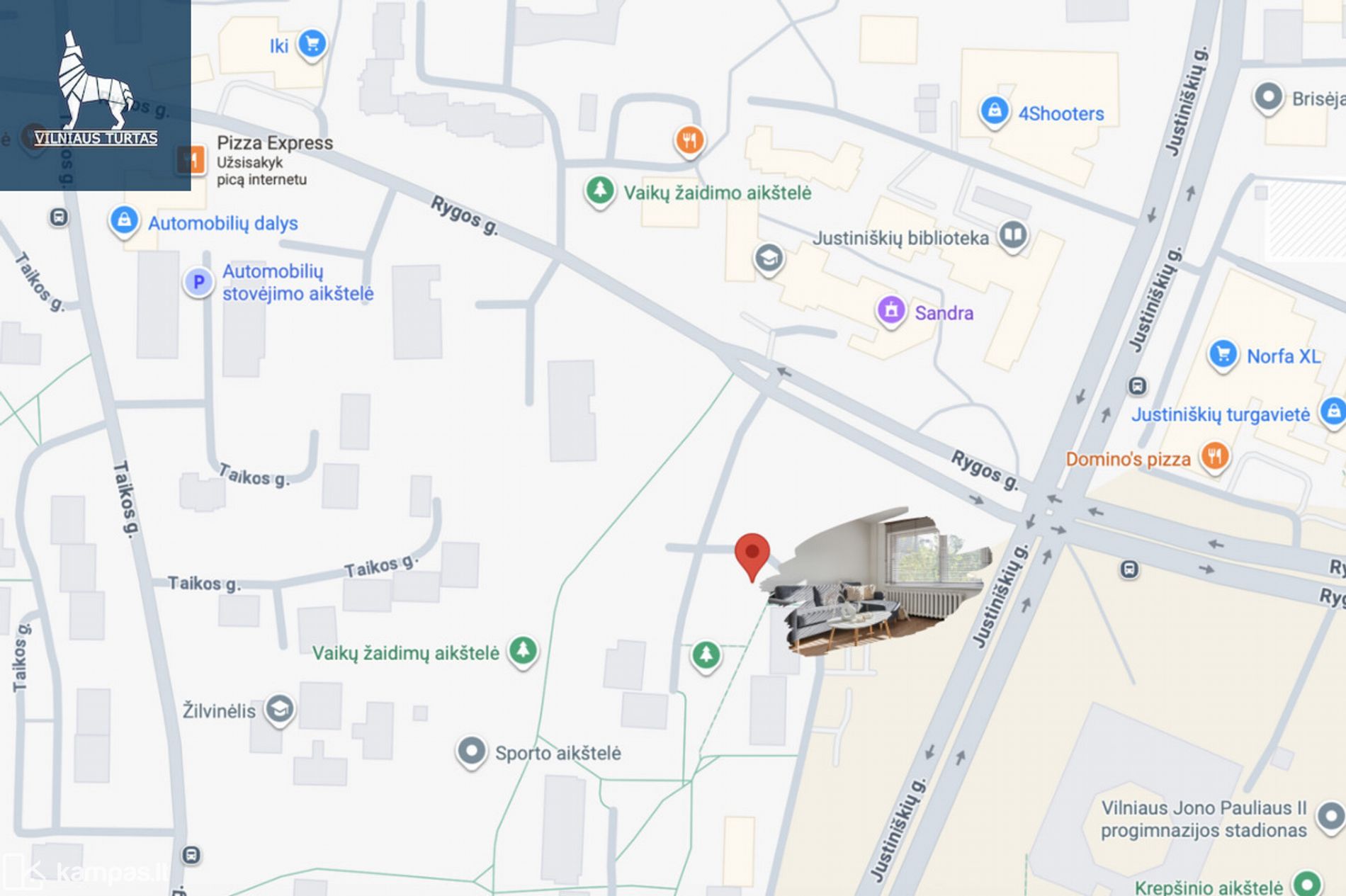 Justiniškės – viena patogiausių Vilniaus vietų kasdieniam gyvenimui. Rajonas vertinamas dėl puikiai išvystytos infrastruktūros: aplink gausu žaliųjų zonų pasivaikščiojimams, tvarkingos vaikų žaidimų ir sporto aikštelės, kelių šimtų metrų atstumu – parduotuvės, grožio salonai, biblioteka ir viskas ko reikia patogiam gyvenimui. Patogus susisiekimas tiek automobiliu, tiek viešuoju transportu leidžia greitai pasiekti miesto centrą bei kitus rajonus.
