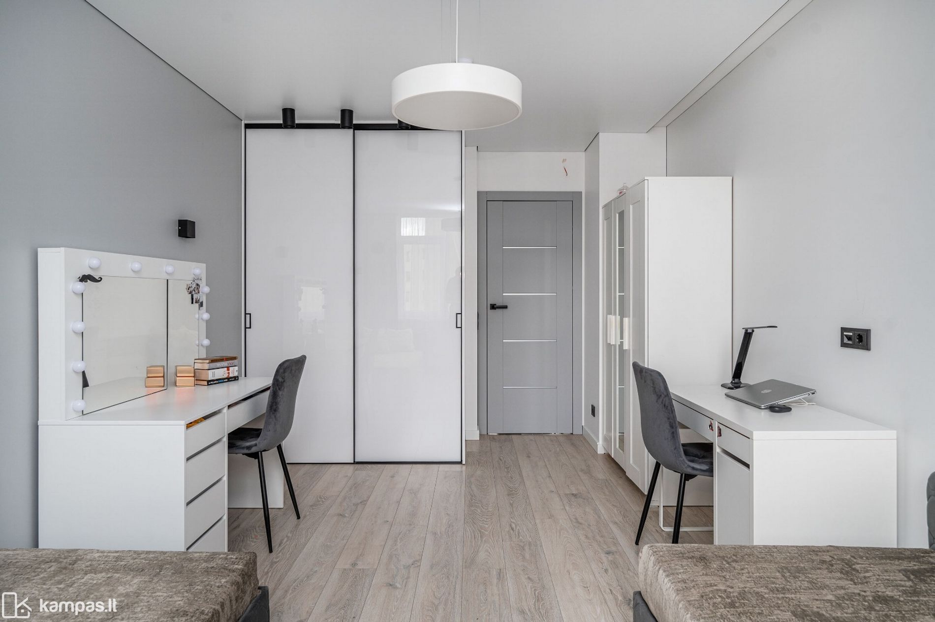 - Miegamajame – erdvi drabužinė su darbo vieta;