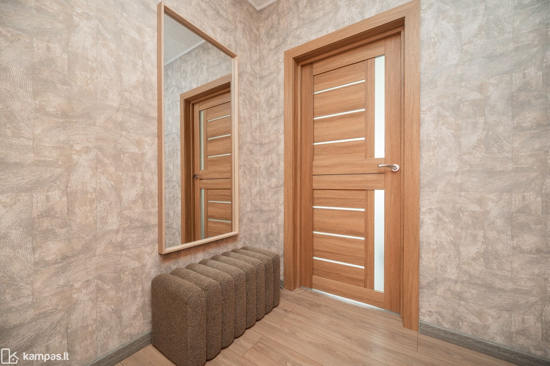 - Sienos: kambariuose tapetai, vonios kambaryje, tualete – plytelės, virtuvėje – plytelės/ dažytos;
