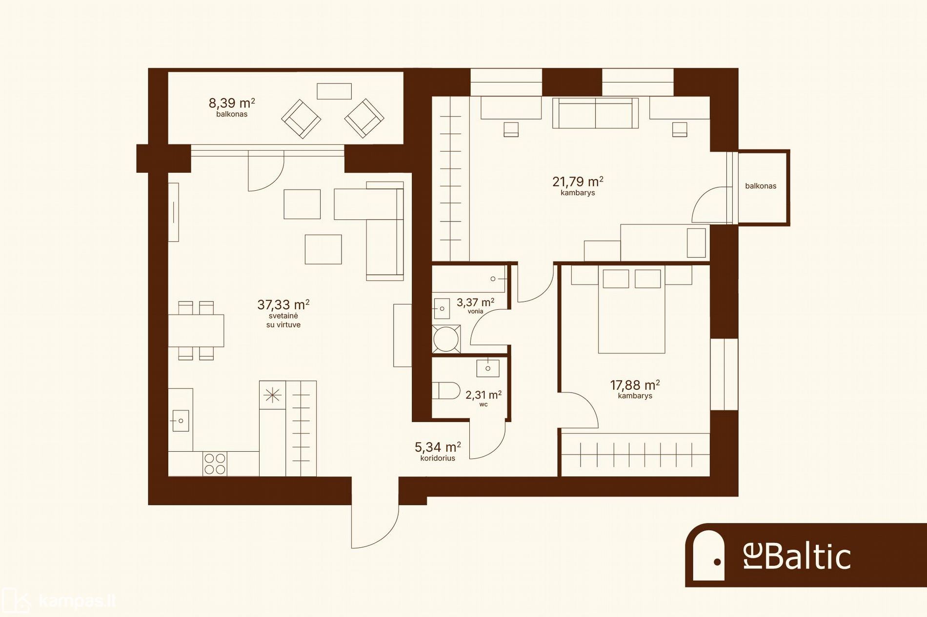 • Buto plotas: 86.28 kv. m, papildomai įstiklinta 8.39 kv.m lodžija