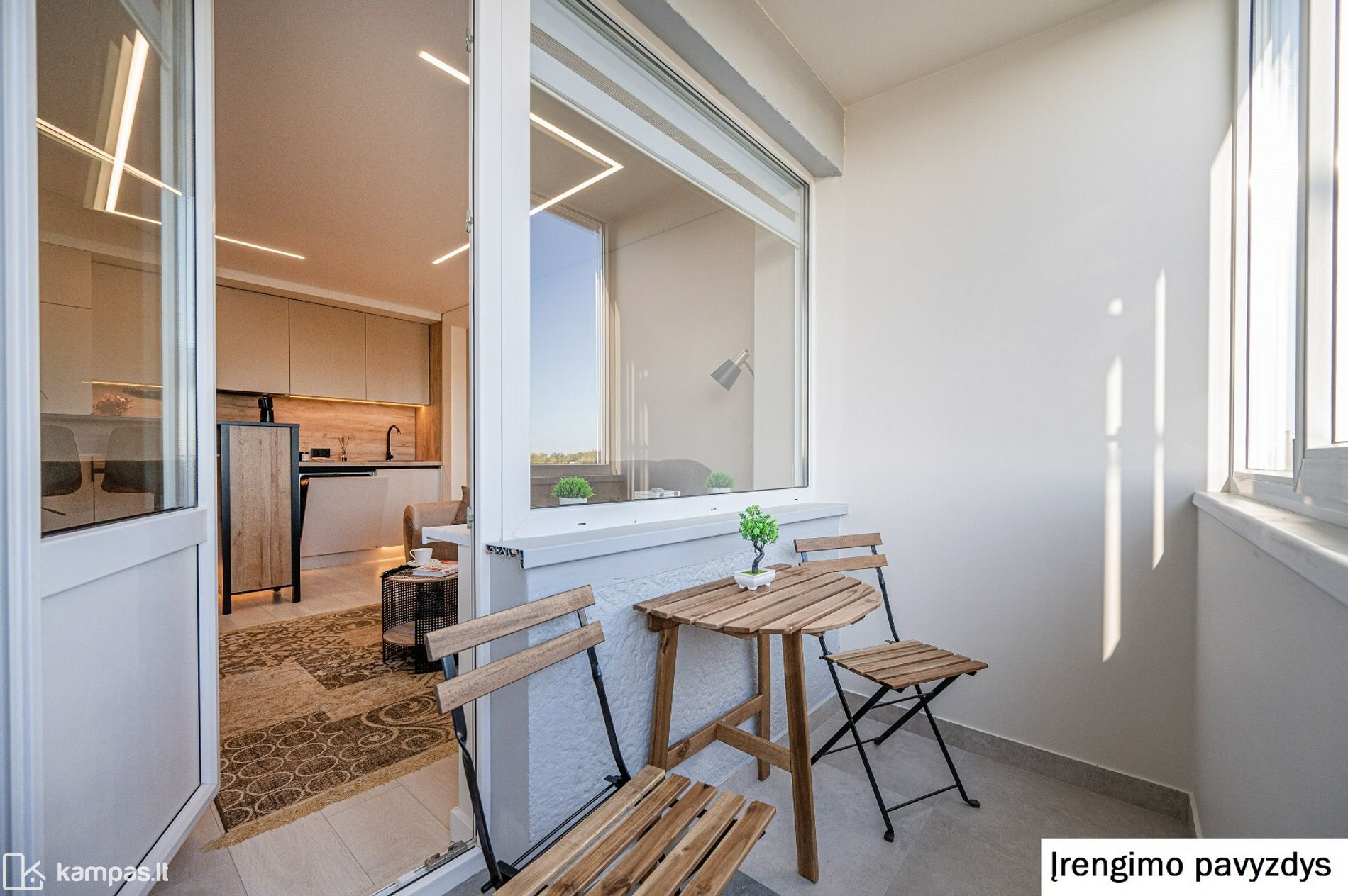 Erdvus balkonas – maloni vieta rytinei kavai, jaukiems vakarams ar poilsiui gryname ore.