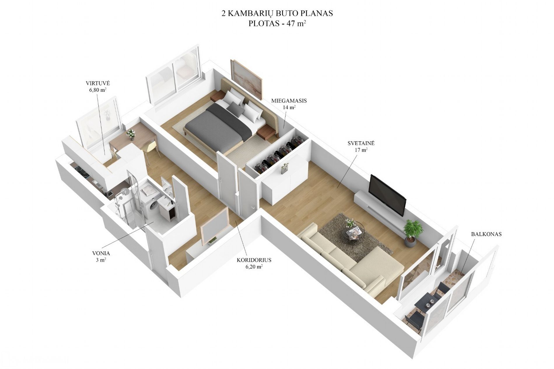 • Erdvus ir šviesus butas bei funkcionalus išplanavimas – patogiai išdėstyti kambariai;