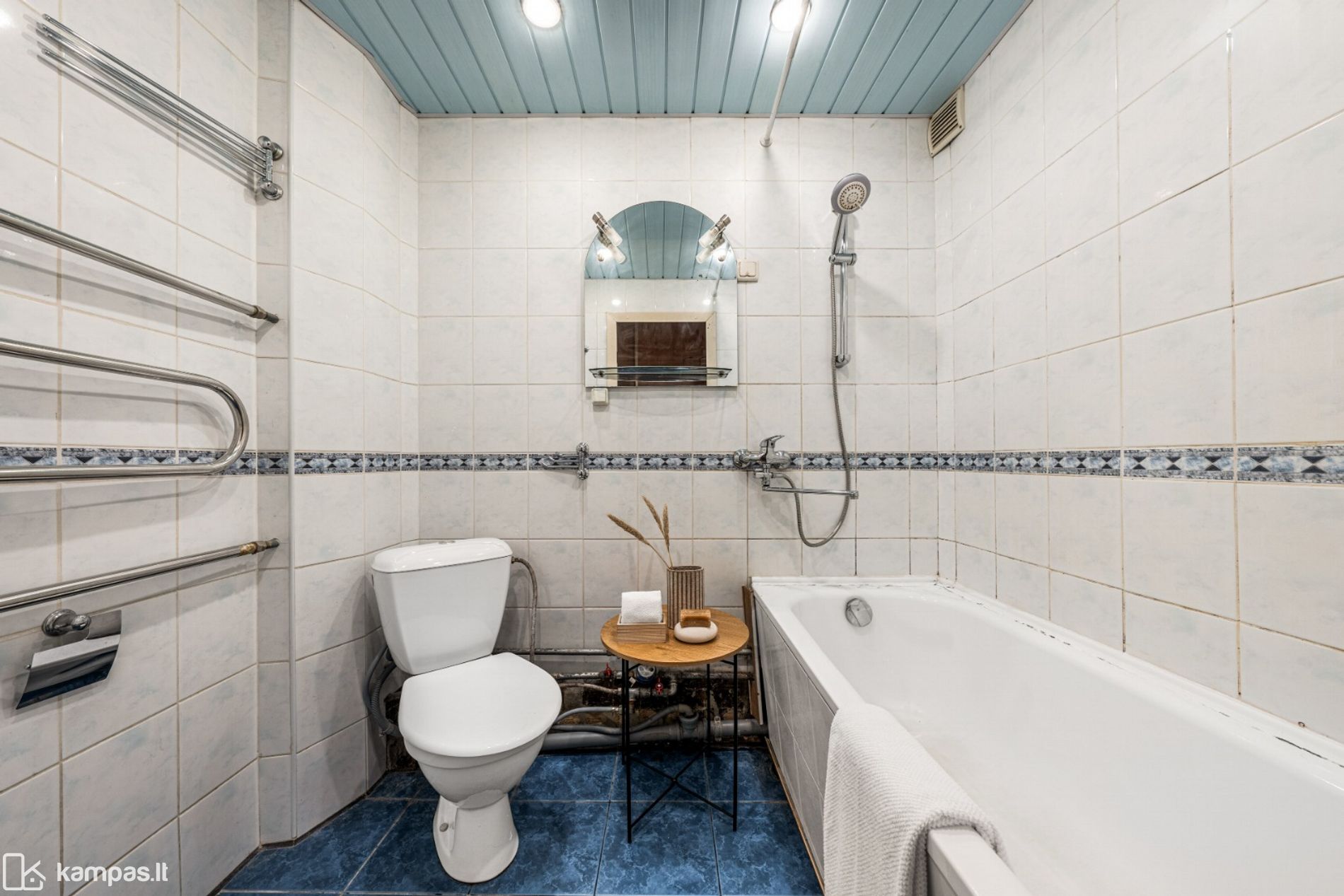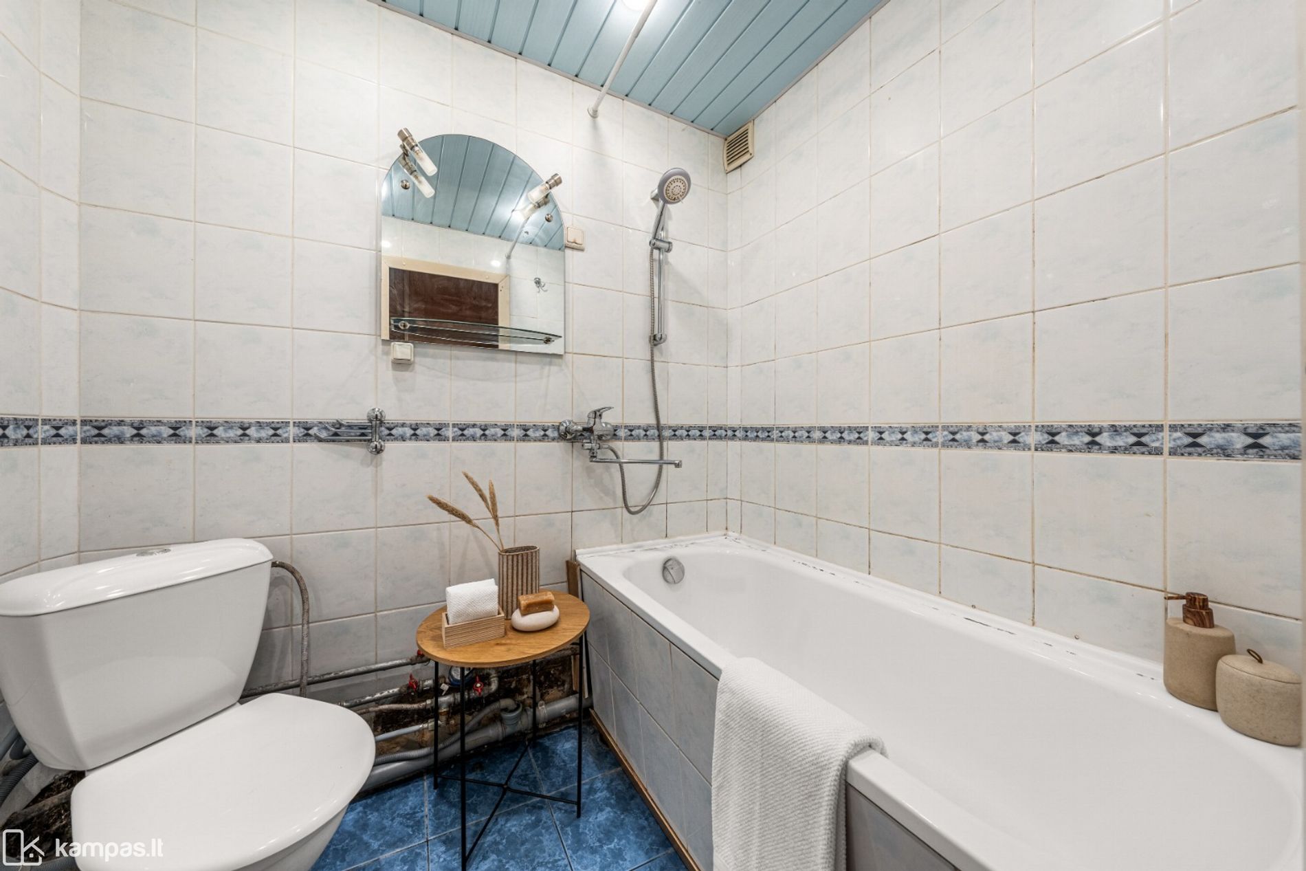 • Grindys: laminatas, san.mazguose - plytelės