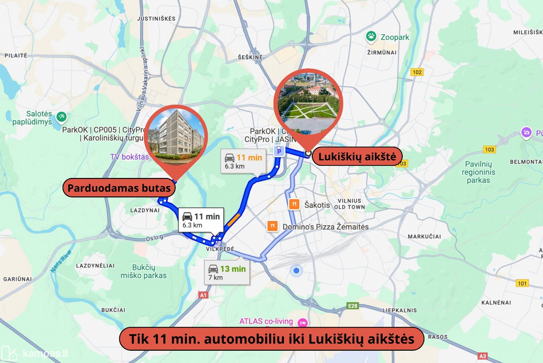 • Patogi vieta – vos keliolika minučių automobiliu iki miesto centro;