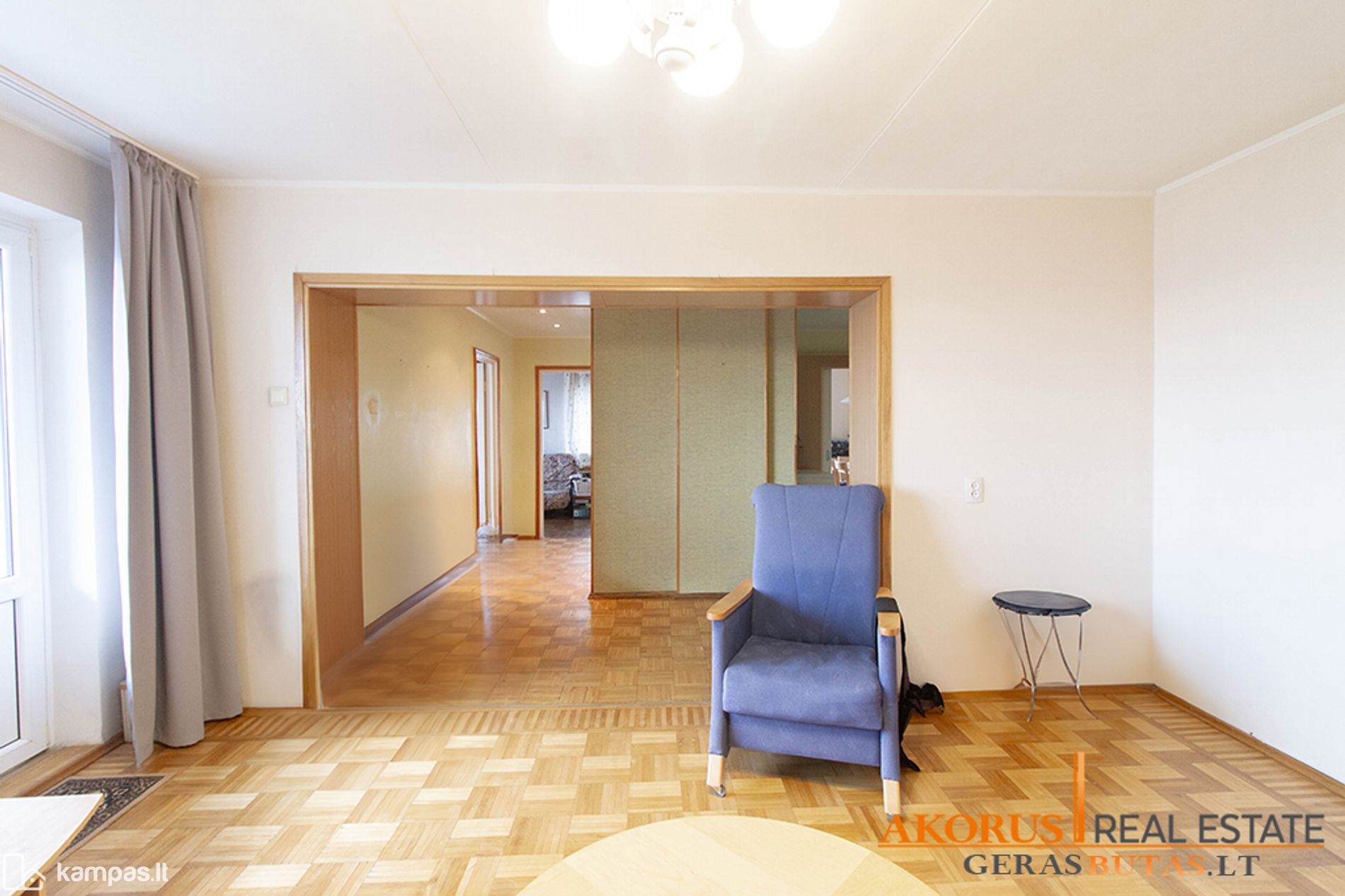 - erdvus trijų kambarių butas;