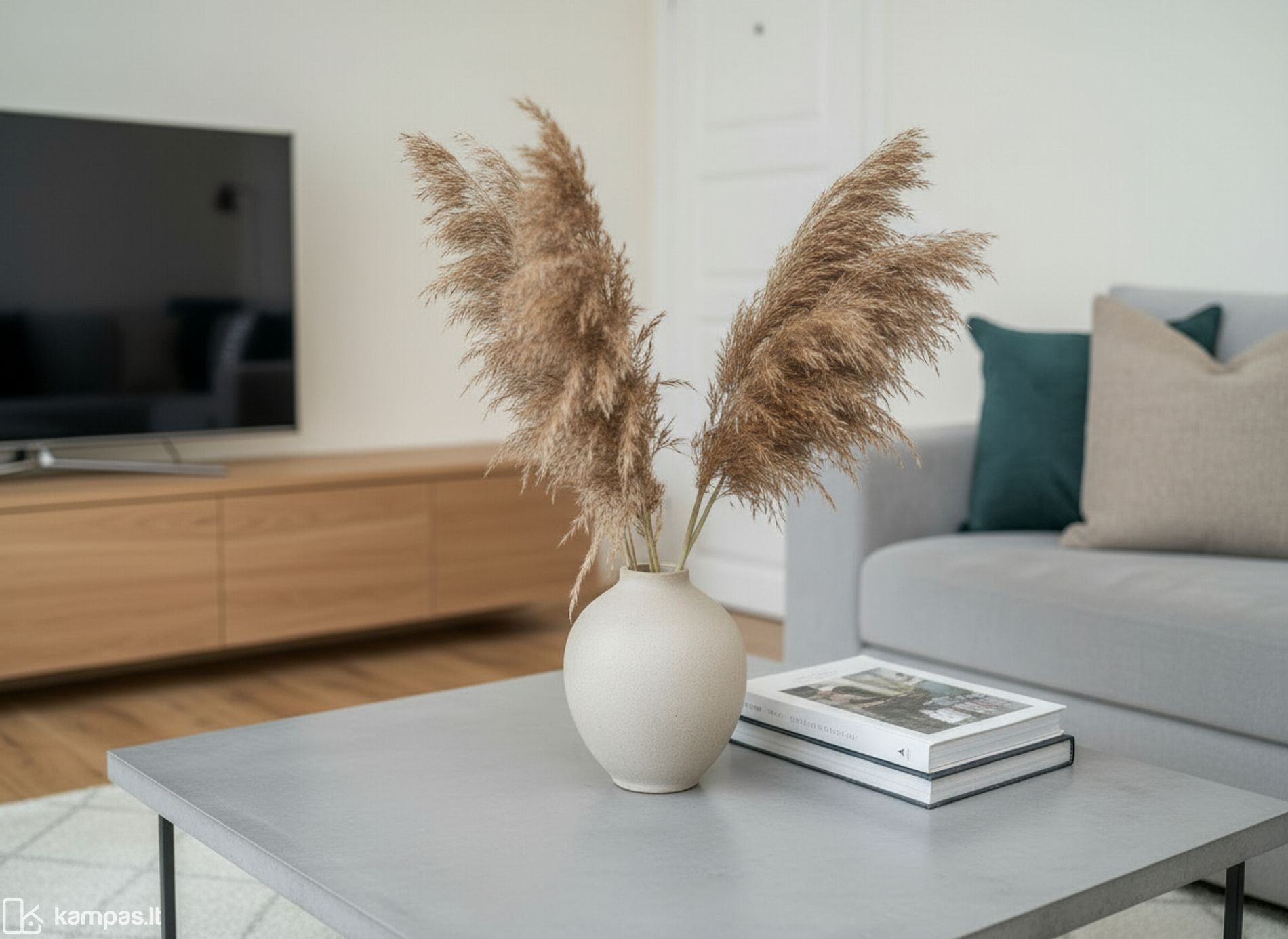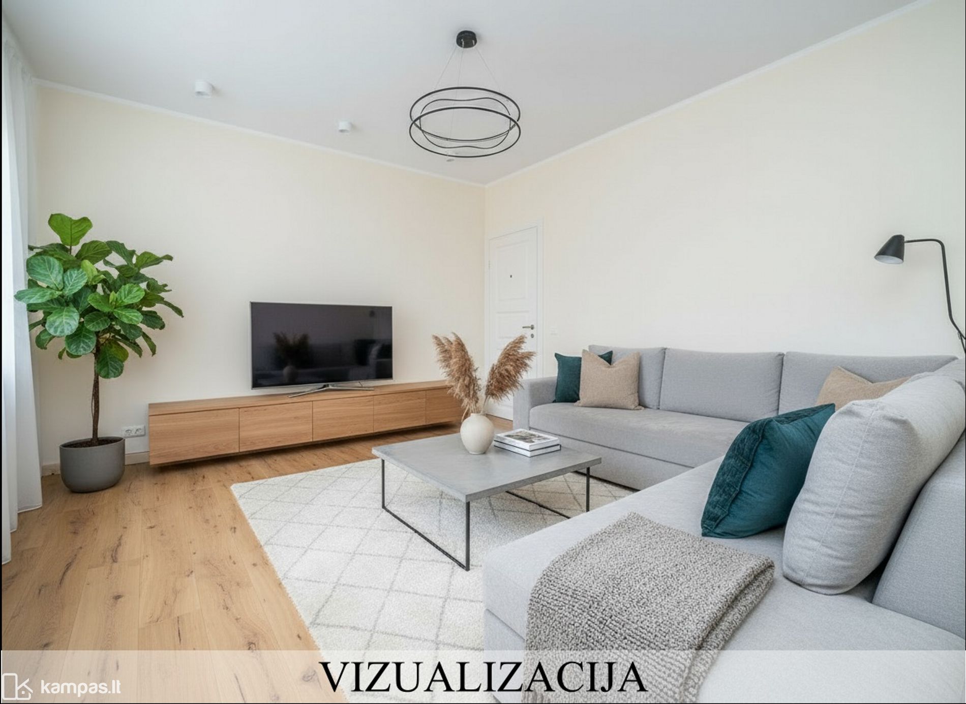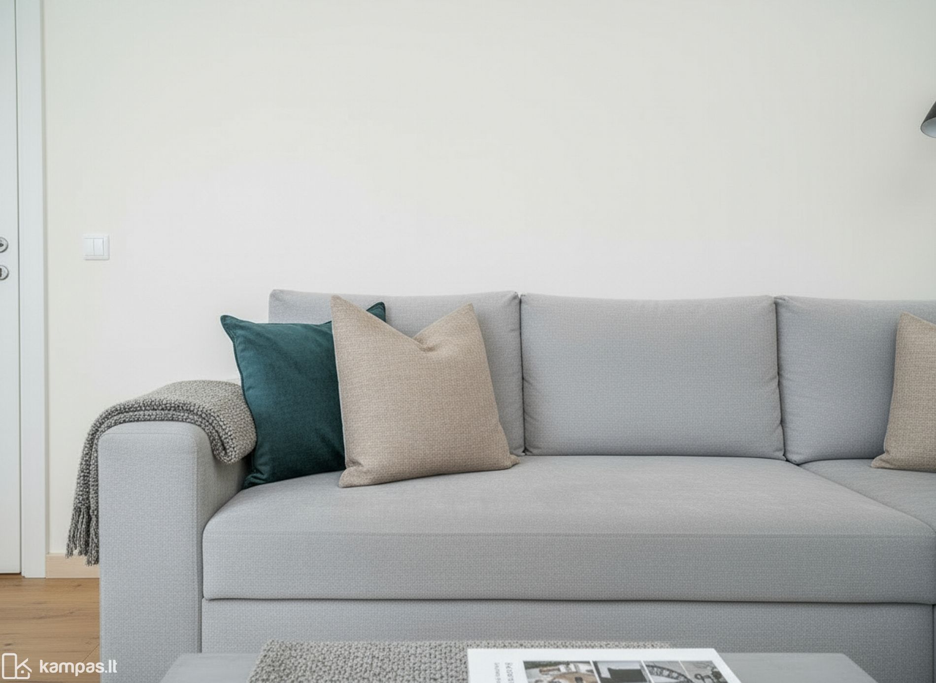 - Šviesi svetainė su nauja sofa-lova – vieta poilsiui ar priimti svečius;