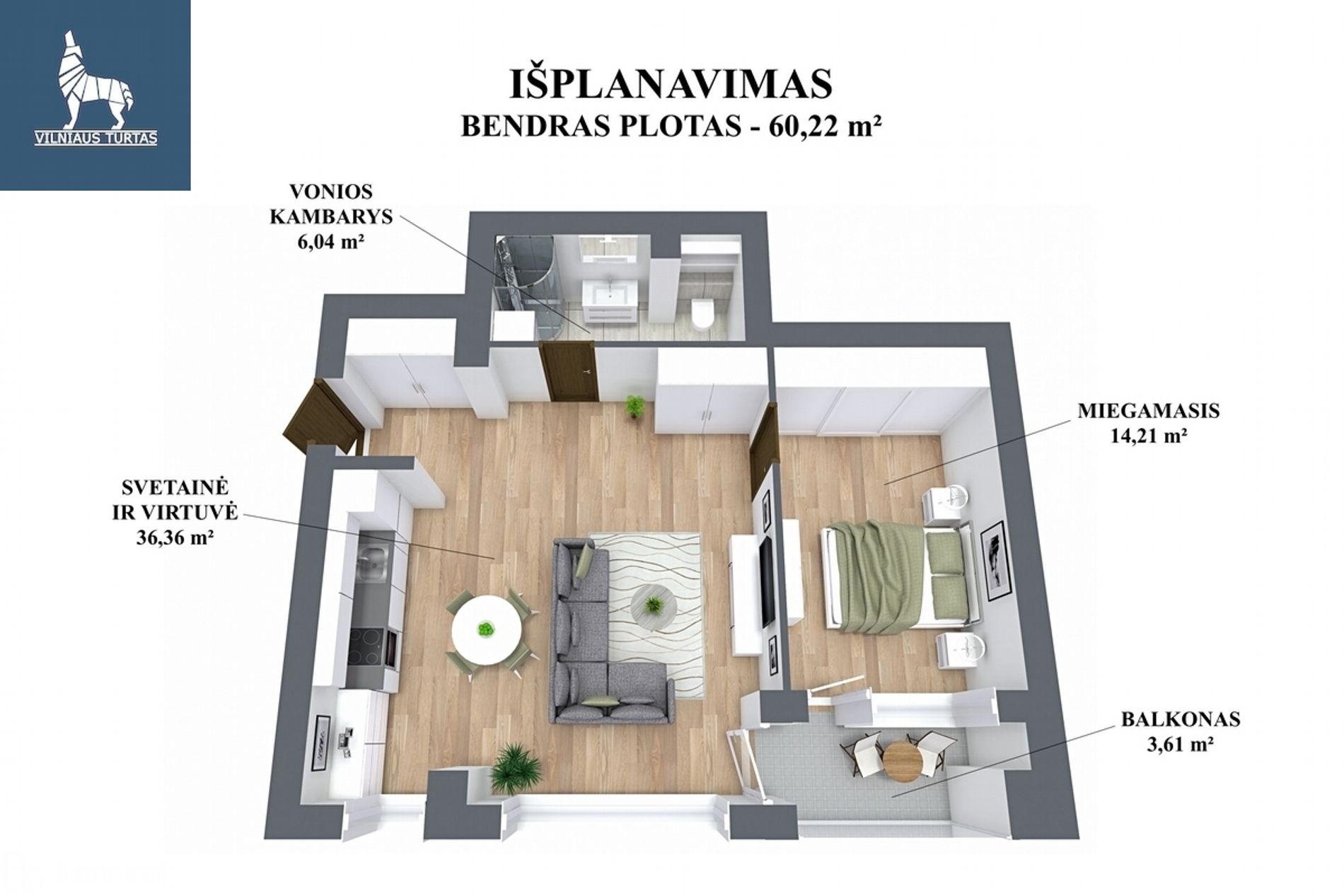 • Erdvus 60,22 kv.m. butas, jaukus išplanavimas.