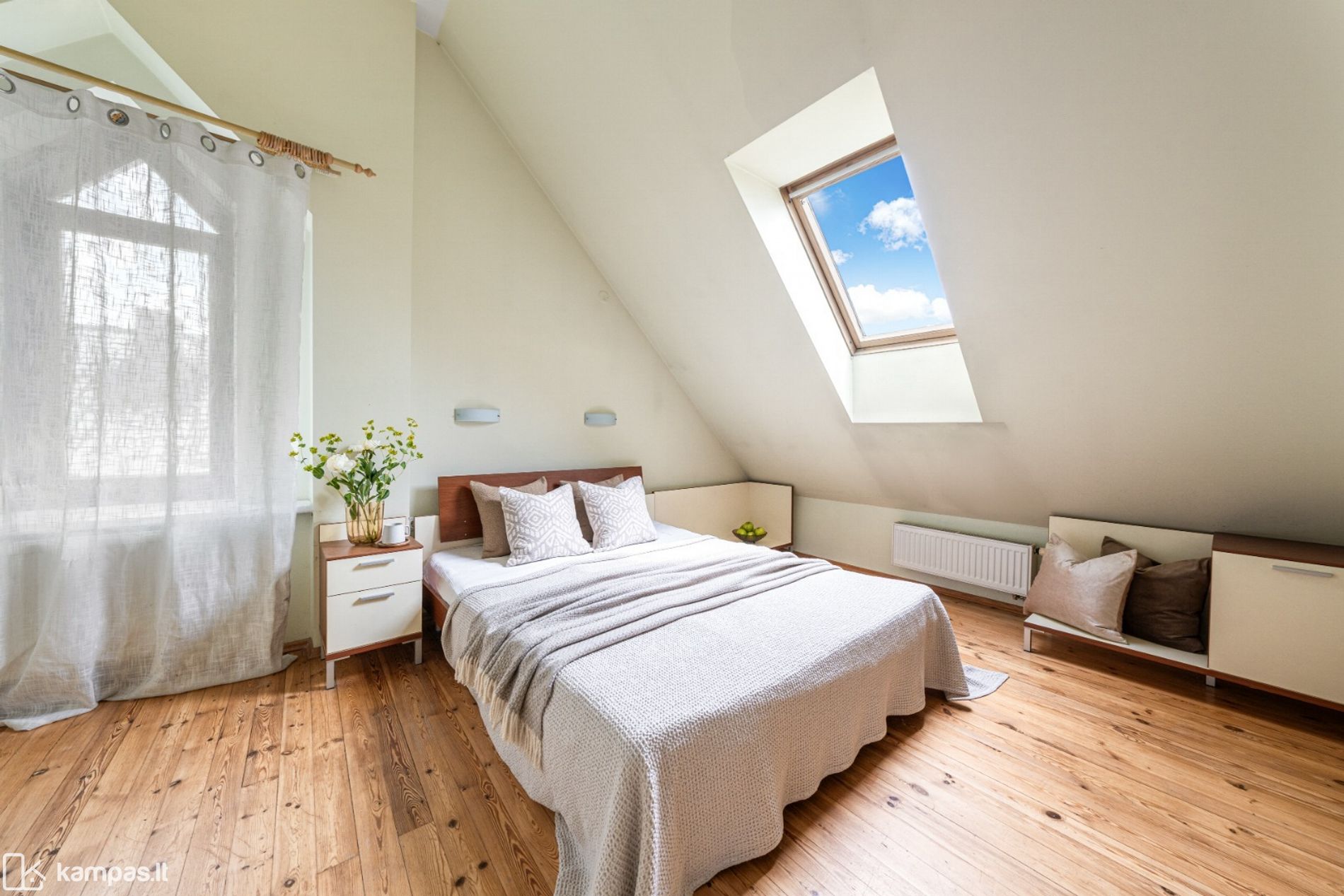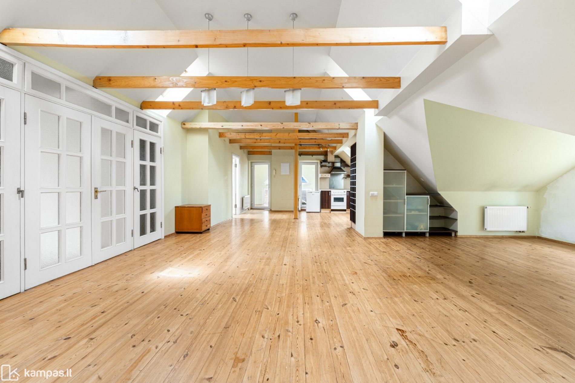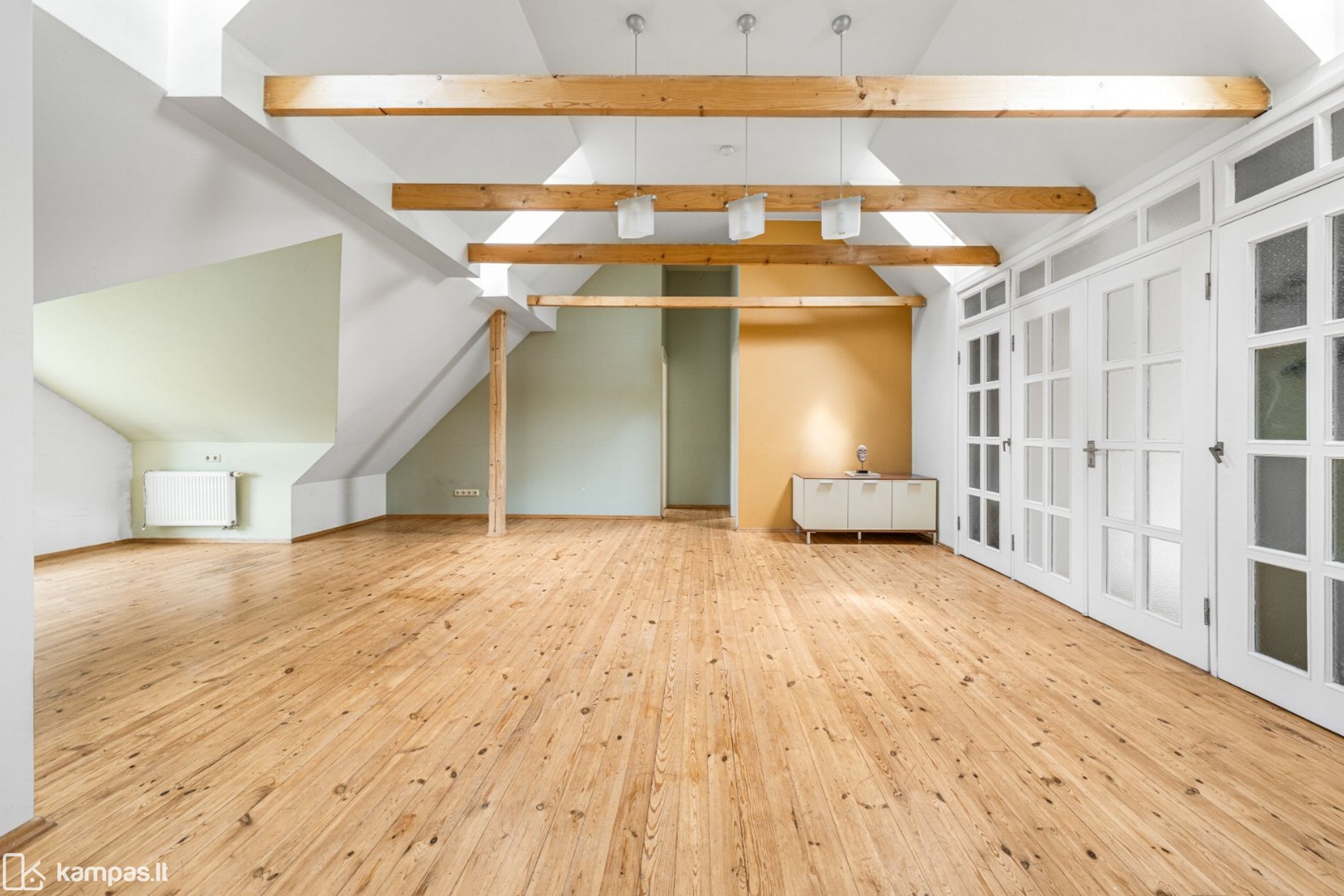 • Trys atskiri kambariai (vienas iš jų mažesnis, tačiau idealiai tinka darbo zonai ar atskirai drabužinei įsirengti);