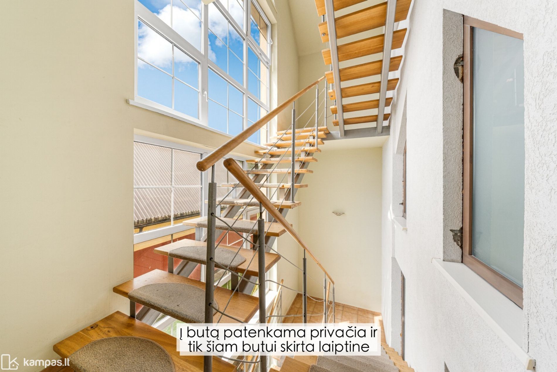 • Atskira laiptinė – privatus įėjimas tik šiam butui, užtikrinantis ramybę ir privatumą;