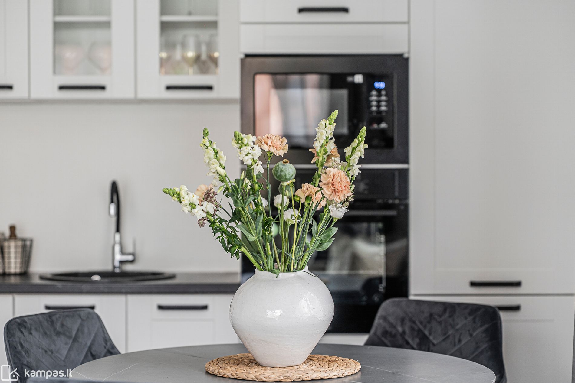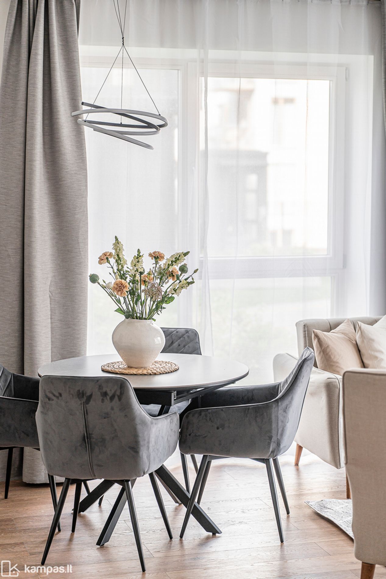 - Išlaikytos aukštos lubos svetainės zonoje.