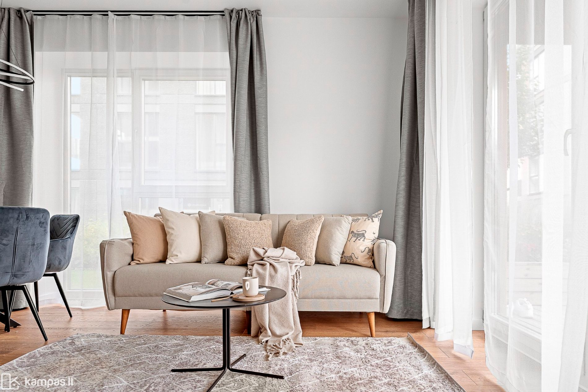 Butas pasižymi patogiu išplanavimu su nuo miegamųjų puikiai izoliuota svetainės ir virtuvės zona. Taip pat, įrengiant svetainės erdvę buvo išlaikytos aukštos lubos, kurios sukuria dar geresnį erdvės ir šviesesnio buto pojūtį.