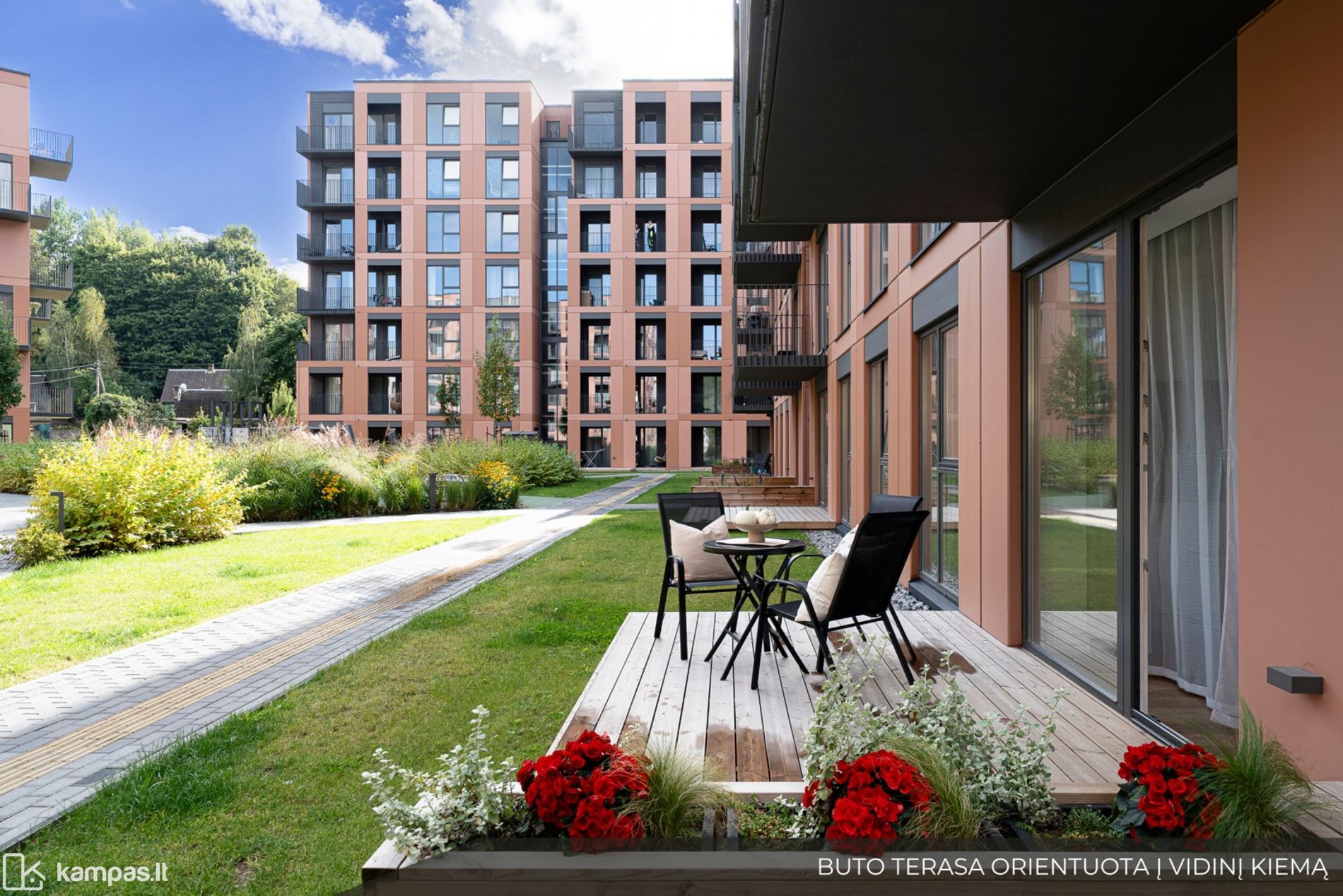 - Butui priklauso erdvi terasa su orientacija į vidinį kiemą.