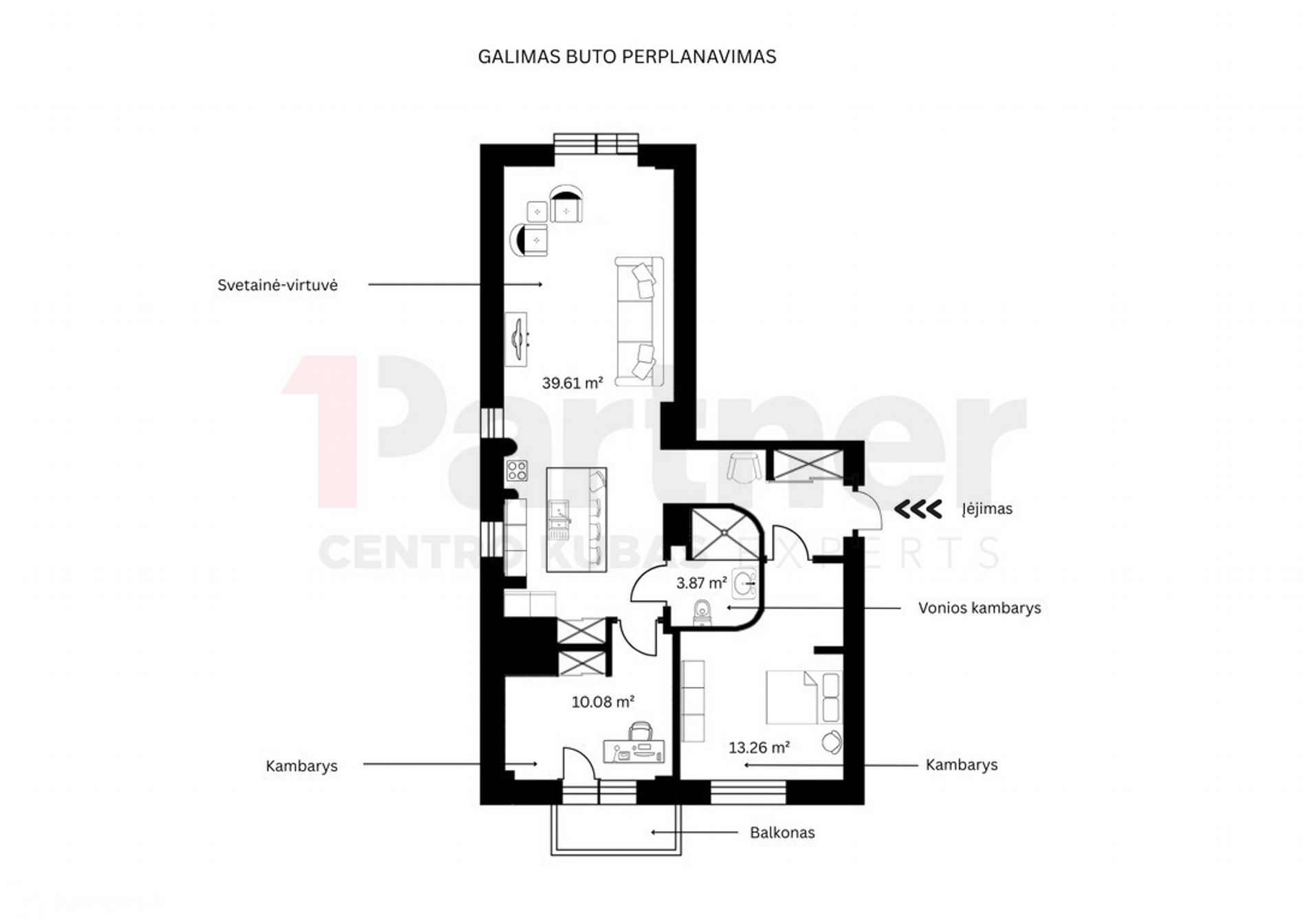 Puiki vieta gyventi ir išskirtinė investicinė galimybė prestižinėje miesto dalyje, kadangi bendras plotas leidžia patalpas pertvarkyti į 3 kambarių butą su erdvia svetaine-virtuve, dviem atskirais miegamais kambariais ir vonios kambariu. Atlikus rekonstrukciją ir remontą, galima susikurti modernų bei funkcionalų būstą pagal savo poreikius ir skonį (pateikiamas galimas patalpų perplanavimo variantas).