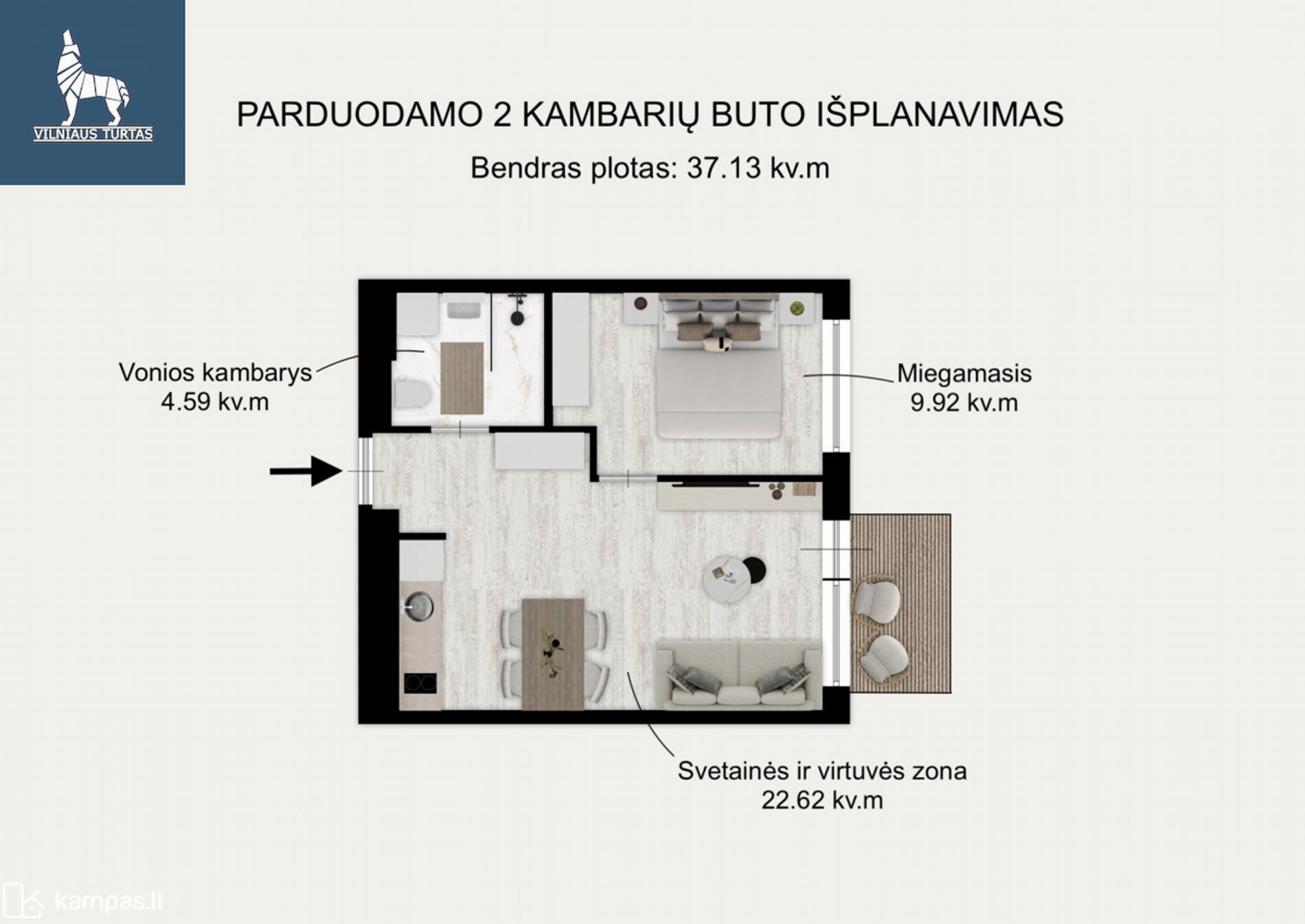 ⎯⎯⎯ Plotas: 37,13 kv. m