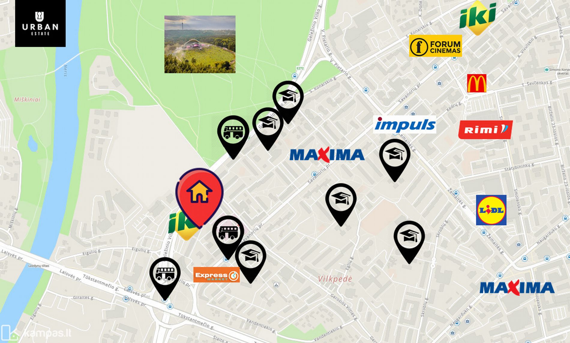 - Patogus susisiekimas su miesto centru ir kitais mikrorajonais tiek nuosavu automobiliu, tiek viešuoju transportu.