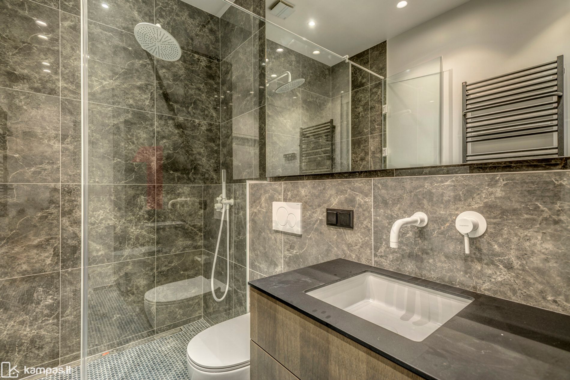 • Vonios kambaryje yra skalbyklė, elektrinė rankšluosčių džiovyklė. Įrengtas grindų šildymas.