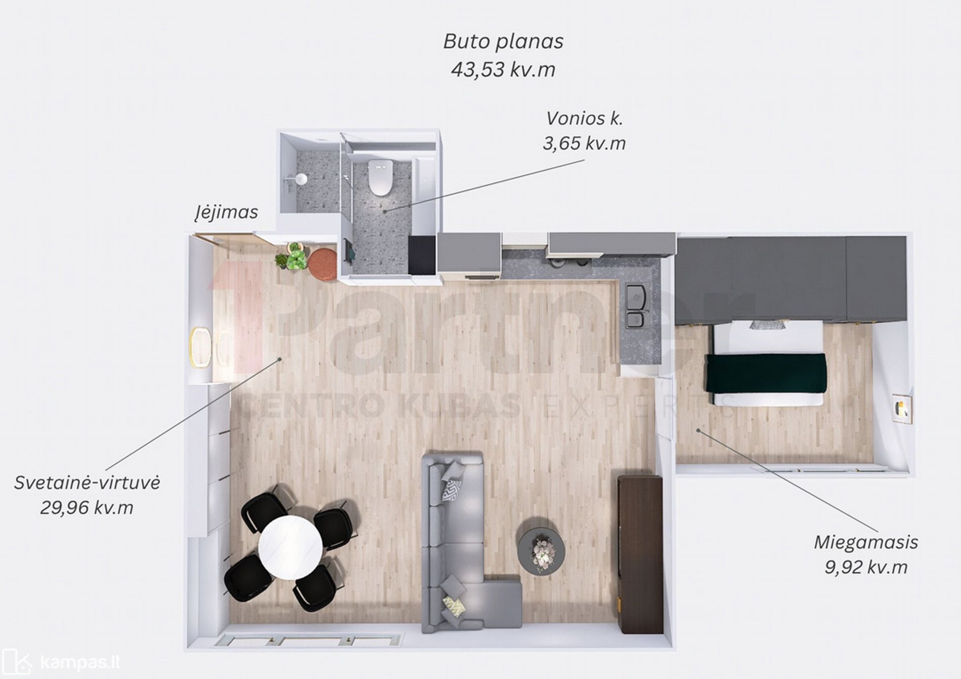 • Virtuvės ir svetainės erdvė - 29,96 kv.m.
