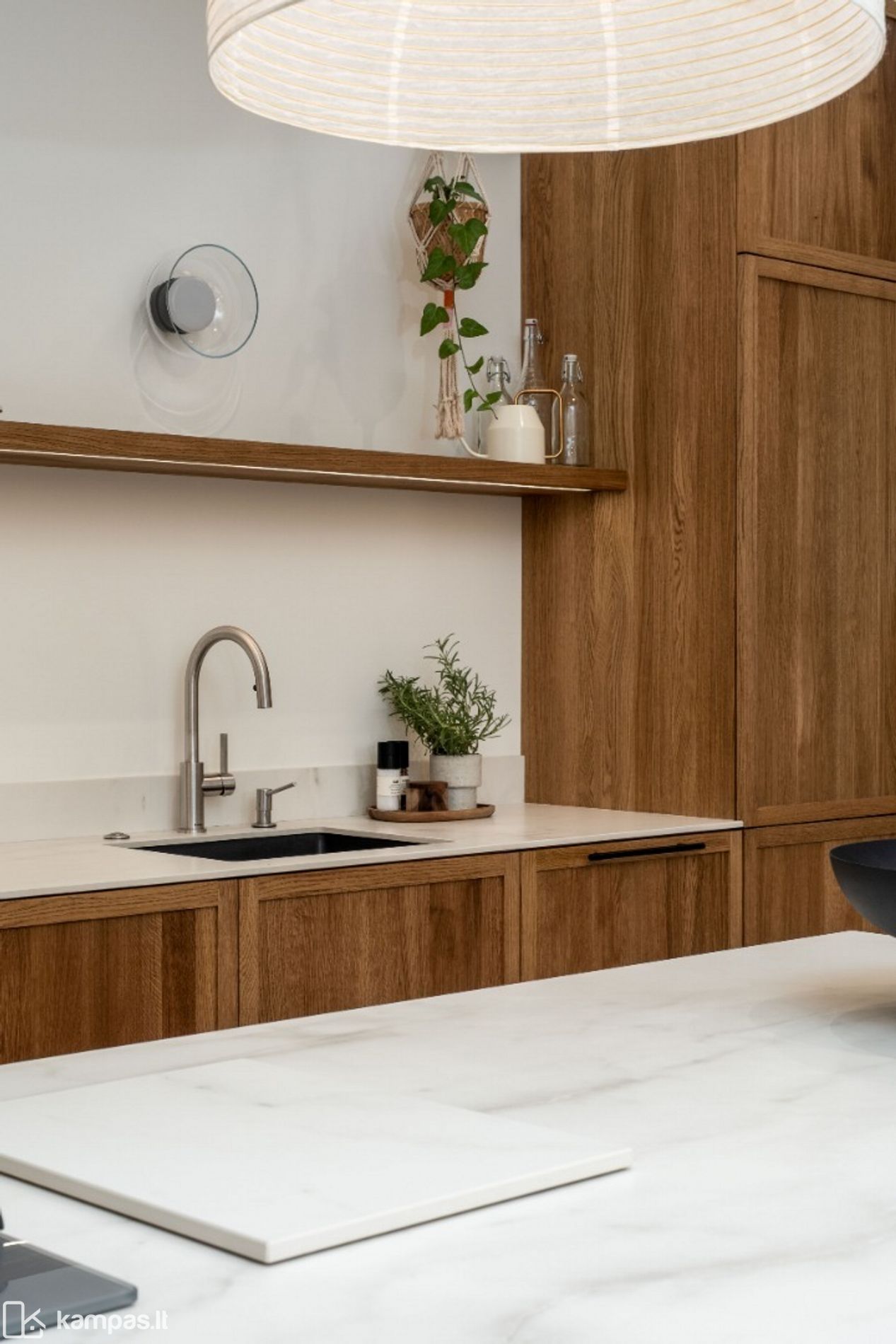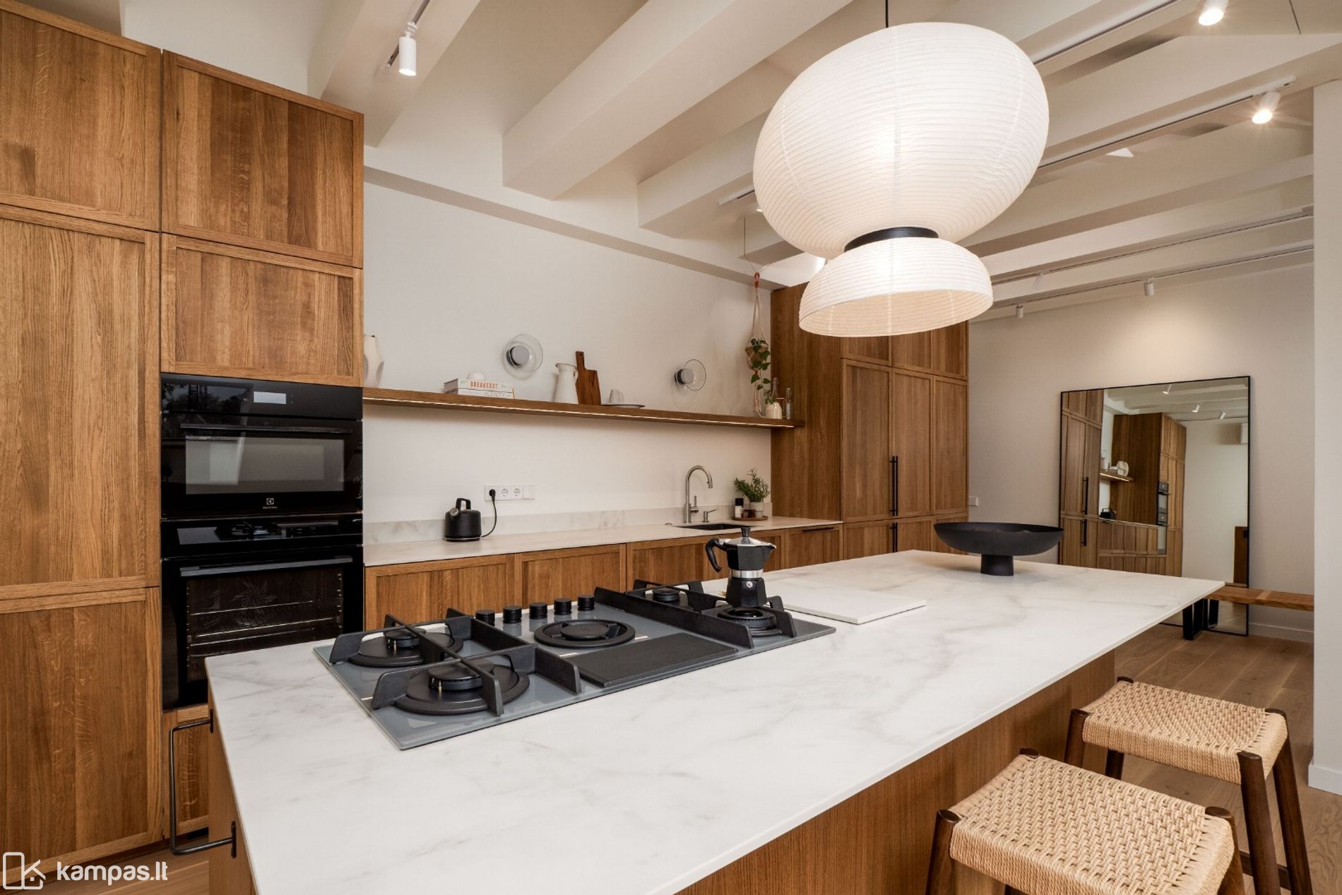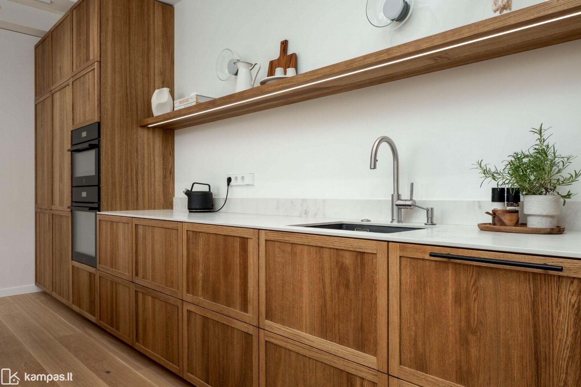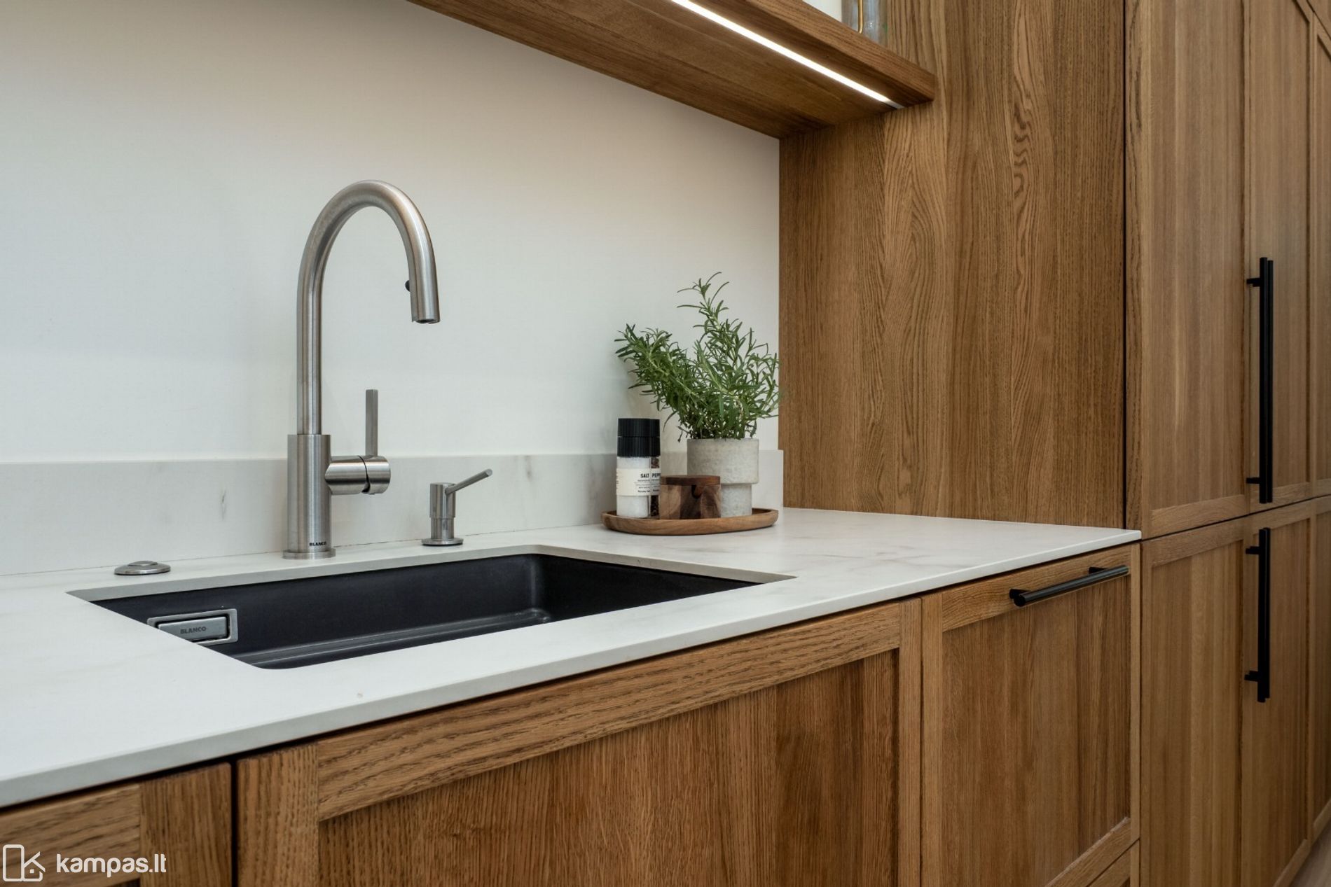 • Aukštos kokybės medžiagos: natūralaus medžio grindys, dirbtinio akmens stalviršiai.