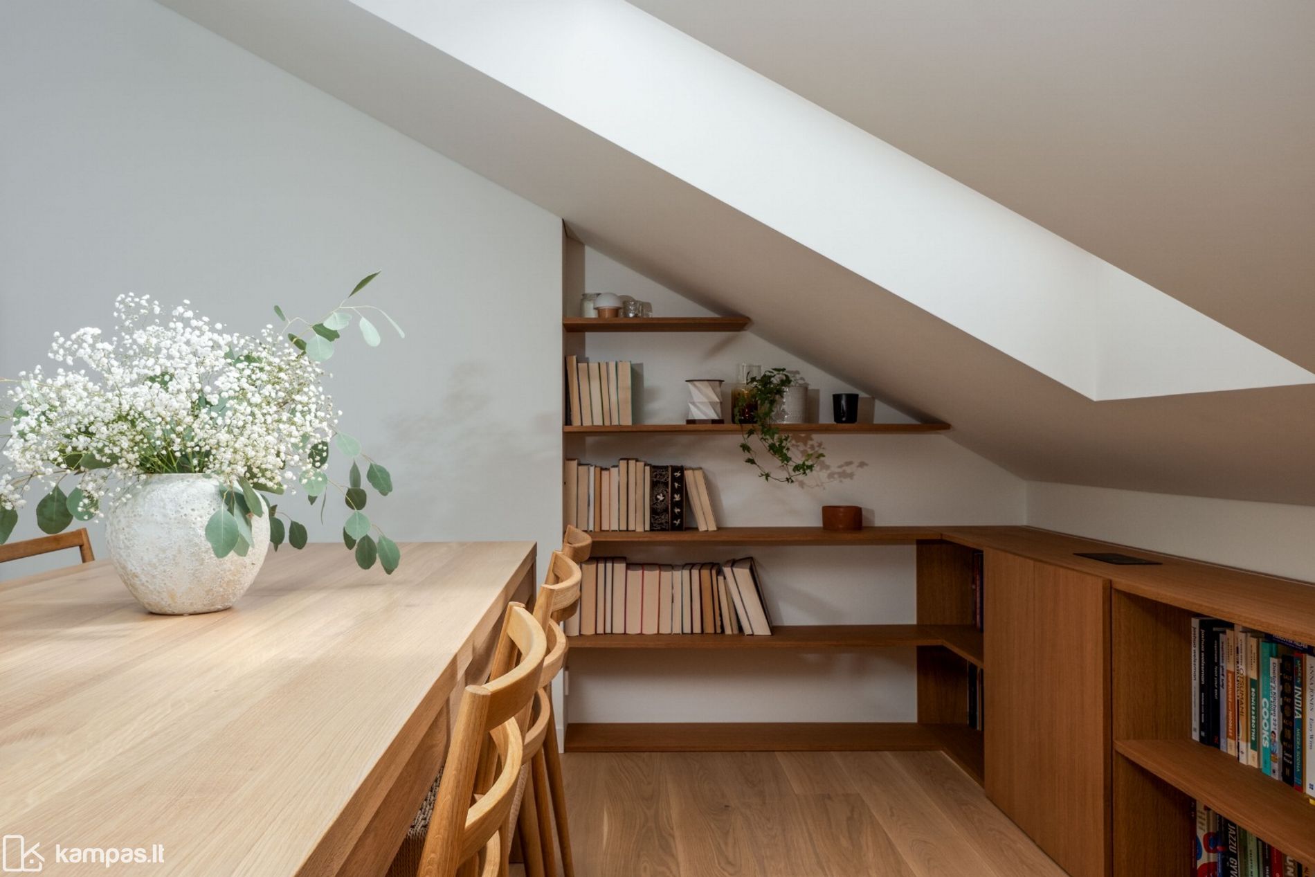 • Kambariai: svetainė su virtuve, darbo kambarys, miegamasis su rūbine