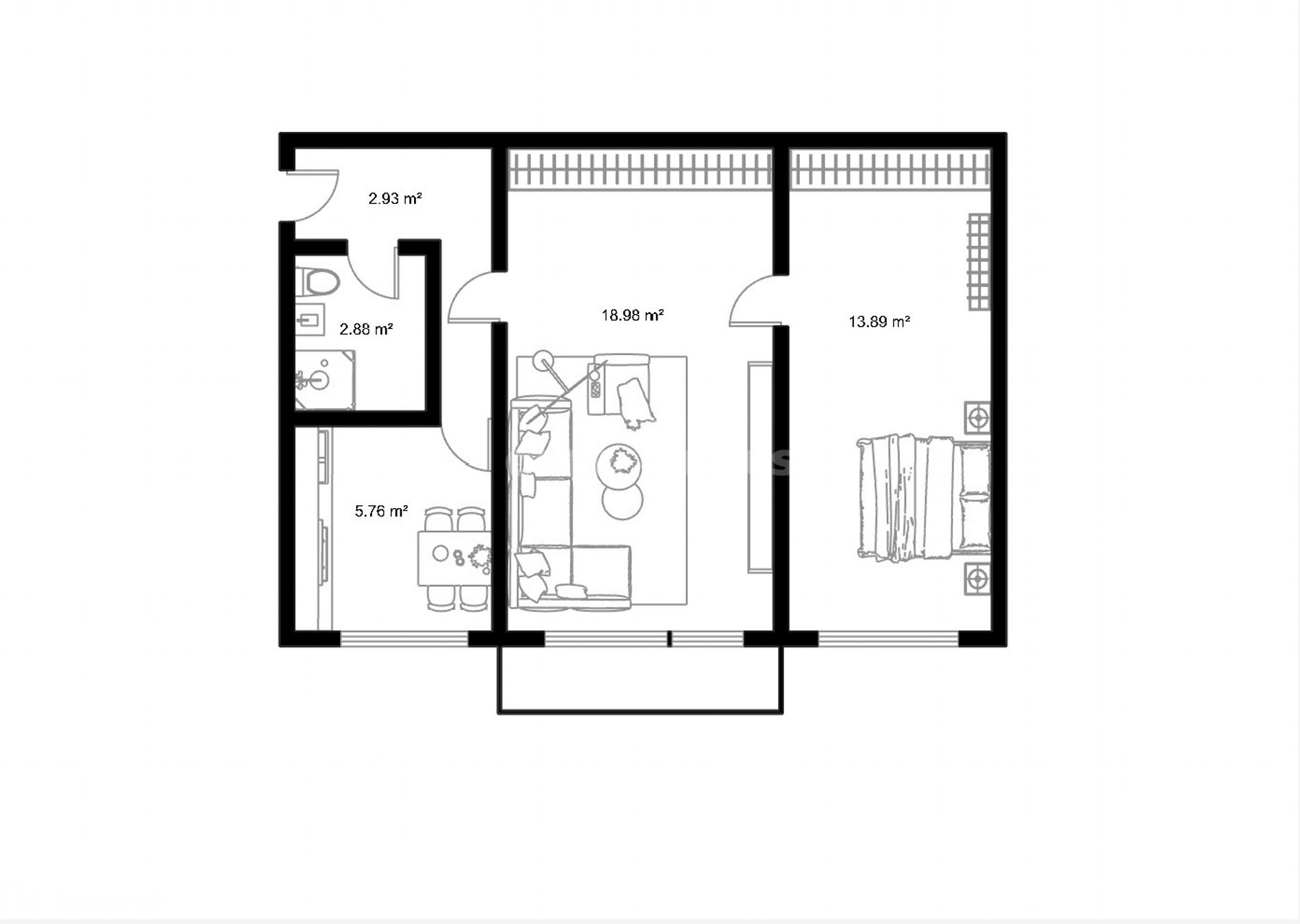 • 44,44 kv. m ploto, patogiai suplanuotas 2 kambarių butas.