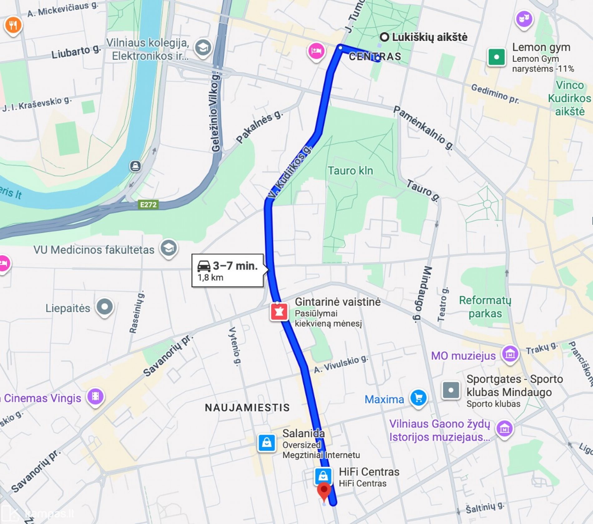 Vos 3 minutės iki Lukiškių aikštės, apie 4 km iki oro uosto.