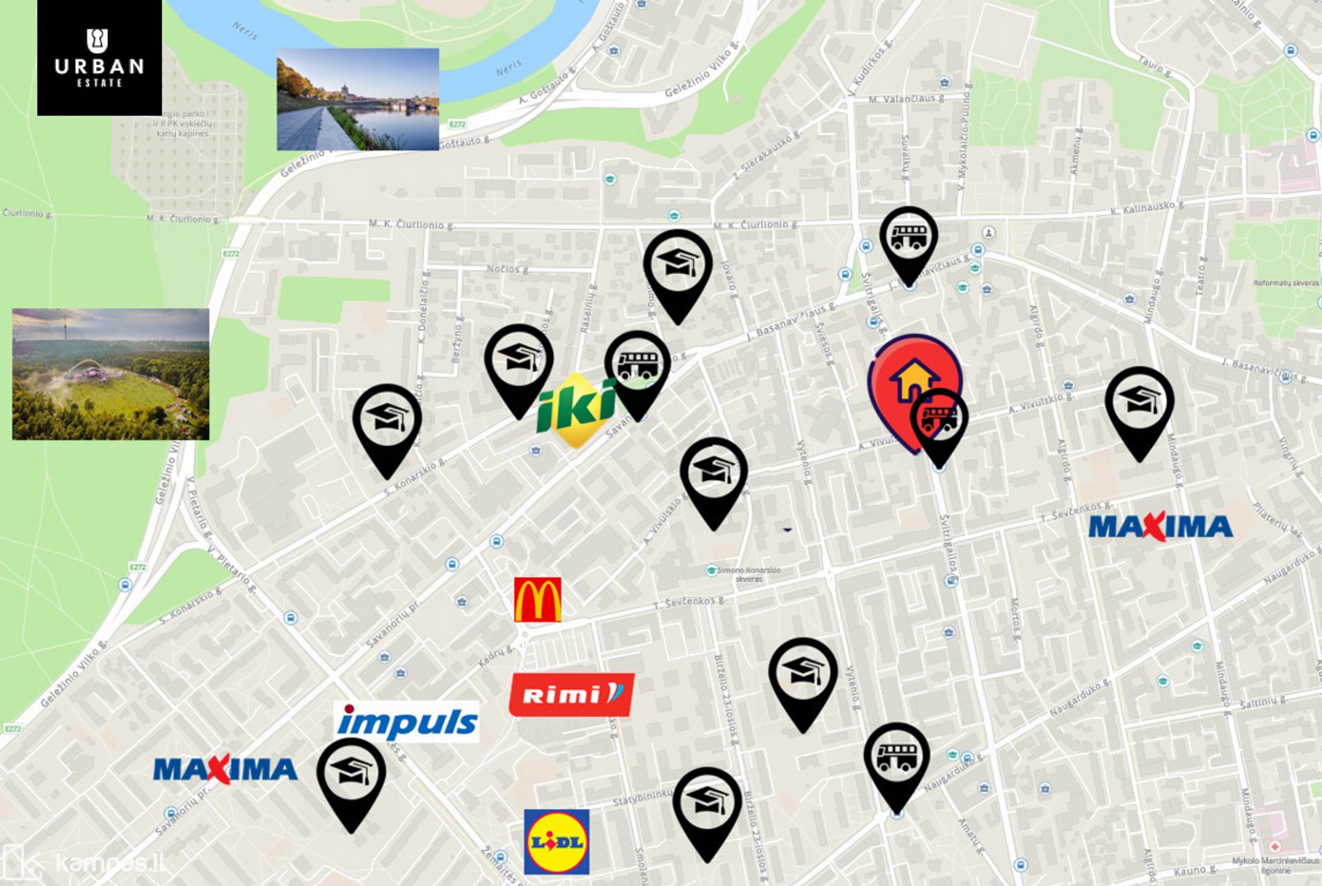 • Strategiškai patogi vieta - nuo čia visus reikalingus objektus ir Senamiestį pasieksite akimirksniu. Aplink įsikūrę prekybos centrai, mokymo bei gydymo įstaigos, viešojo transporto stotelės.