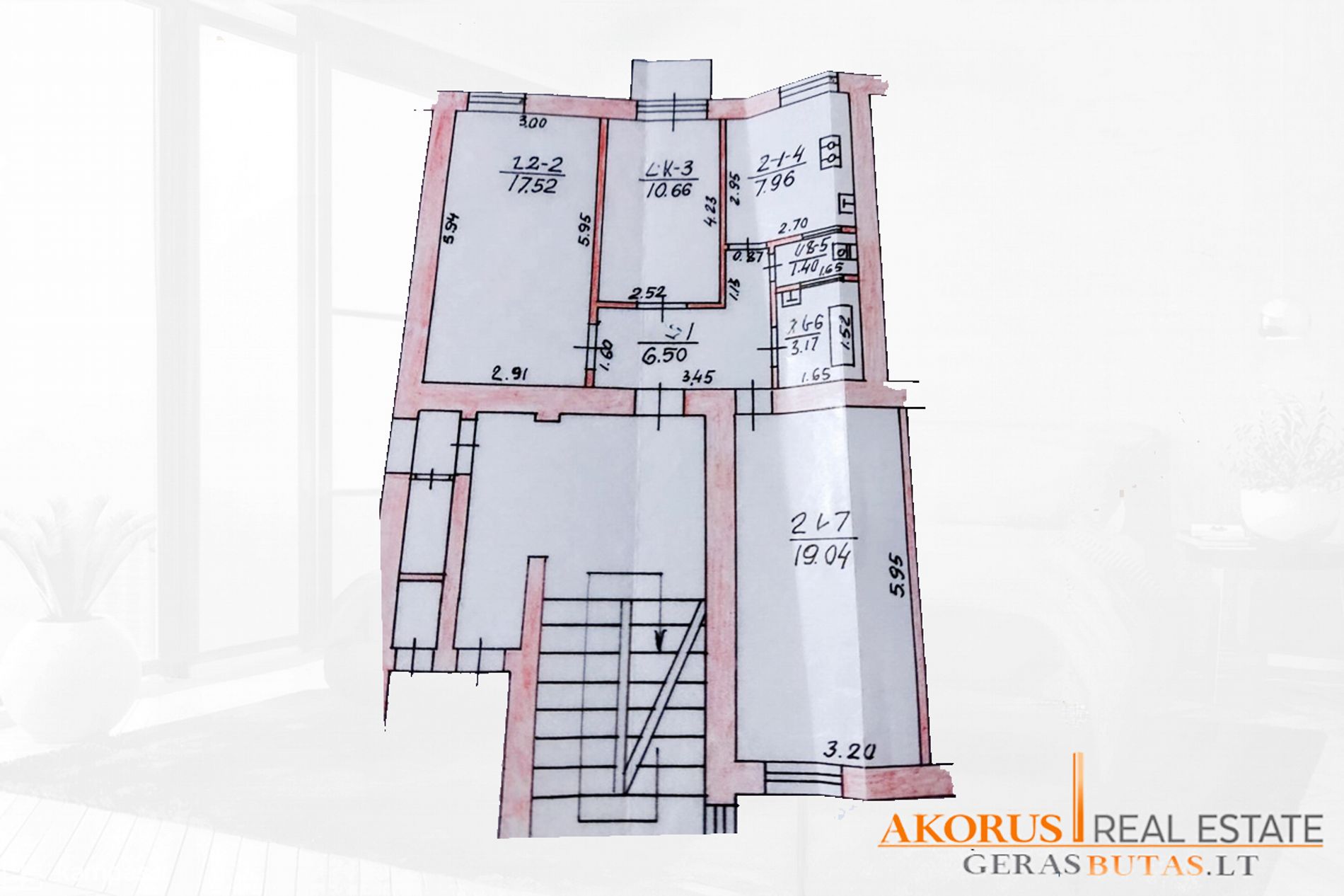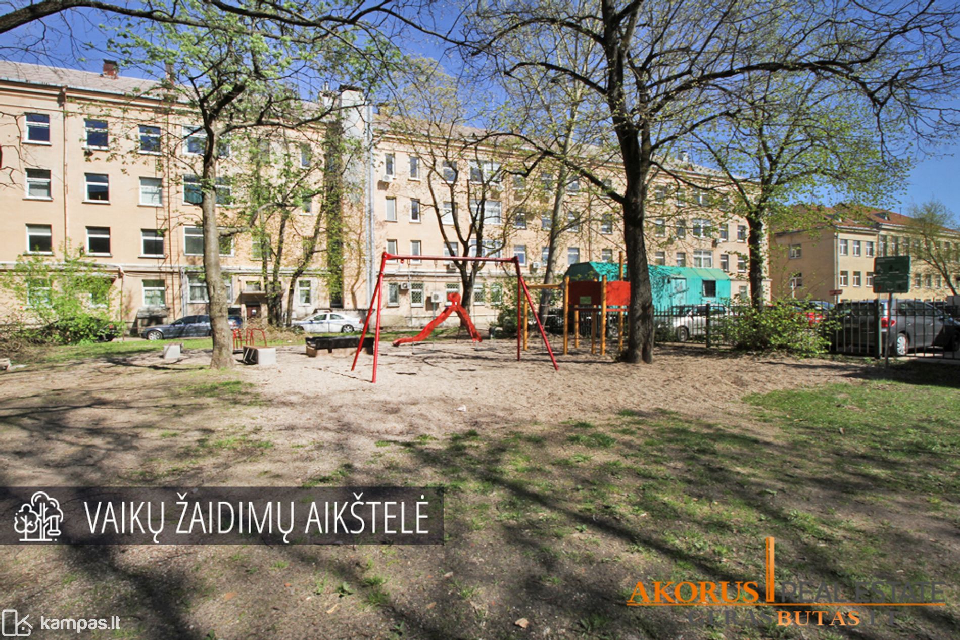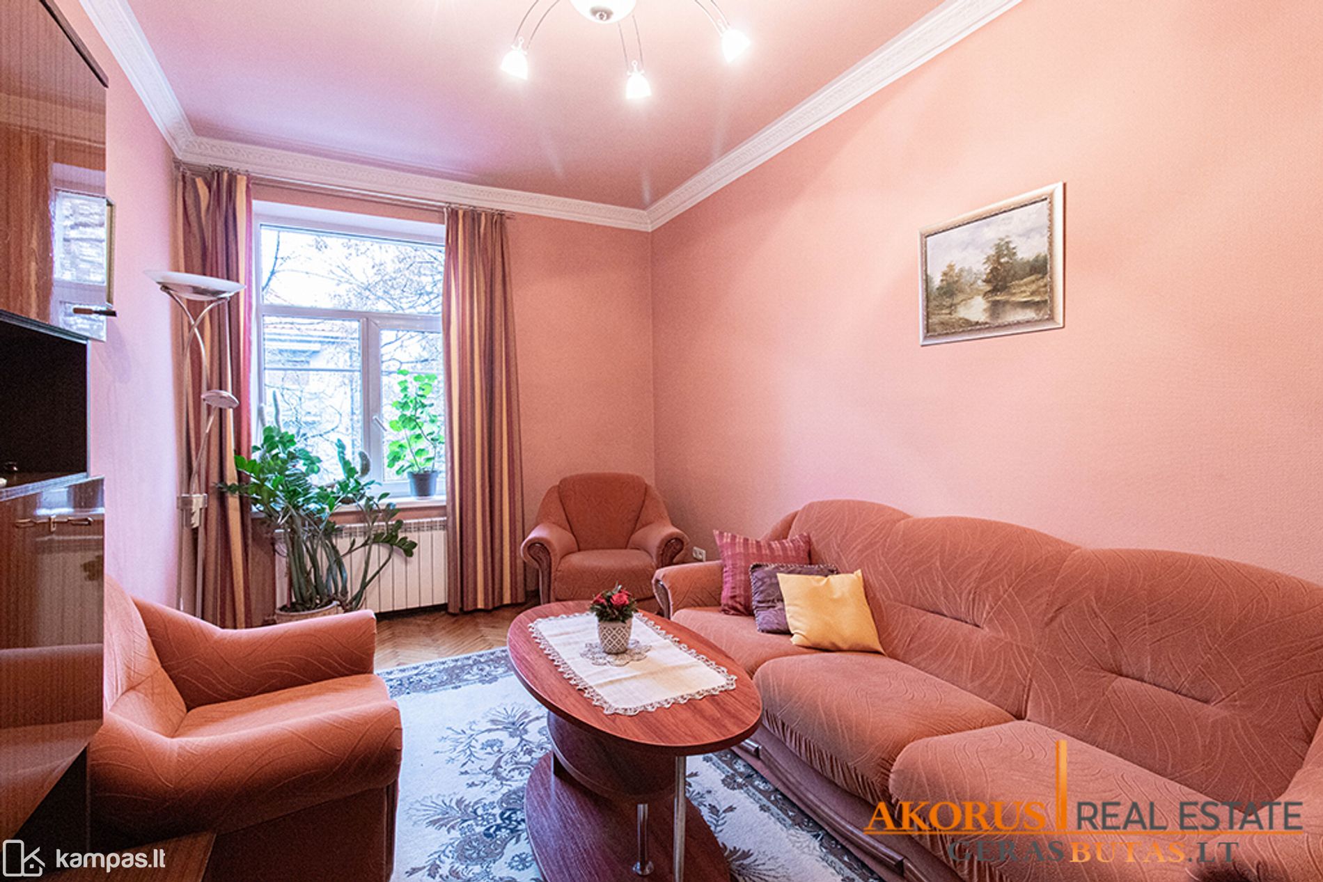 - trys kambariai;