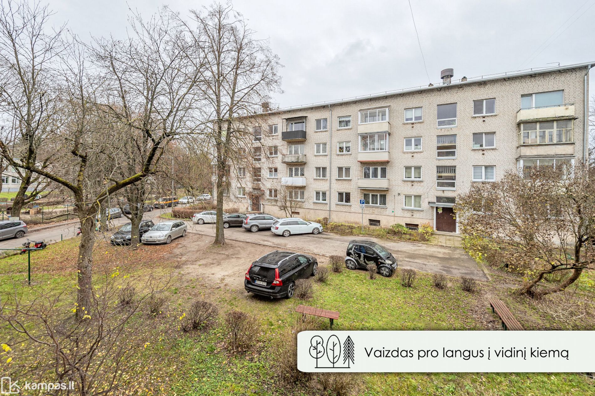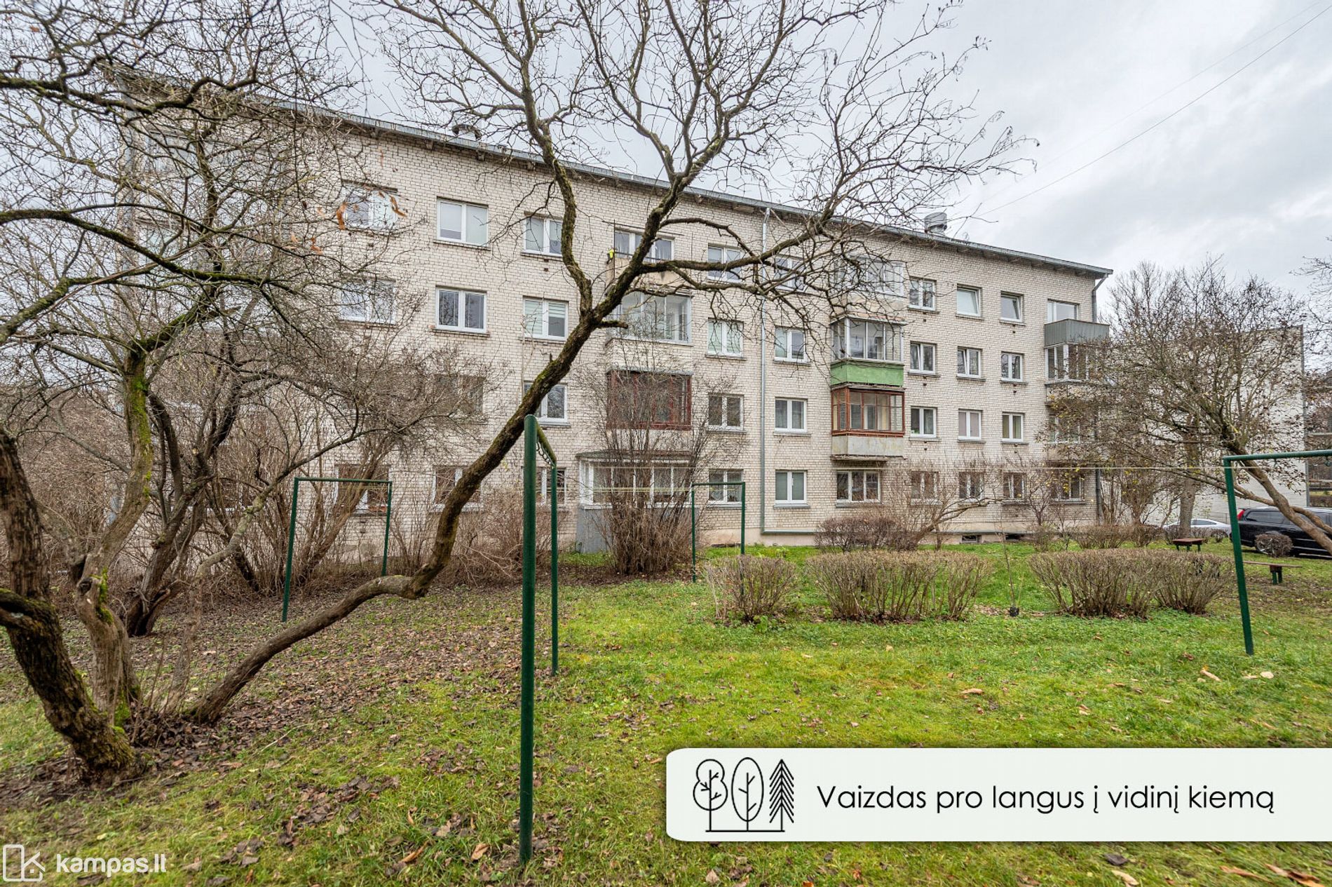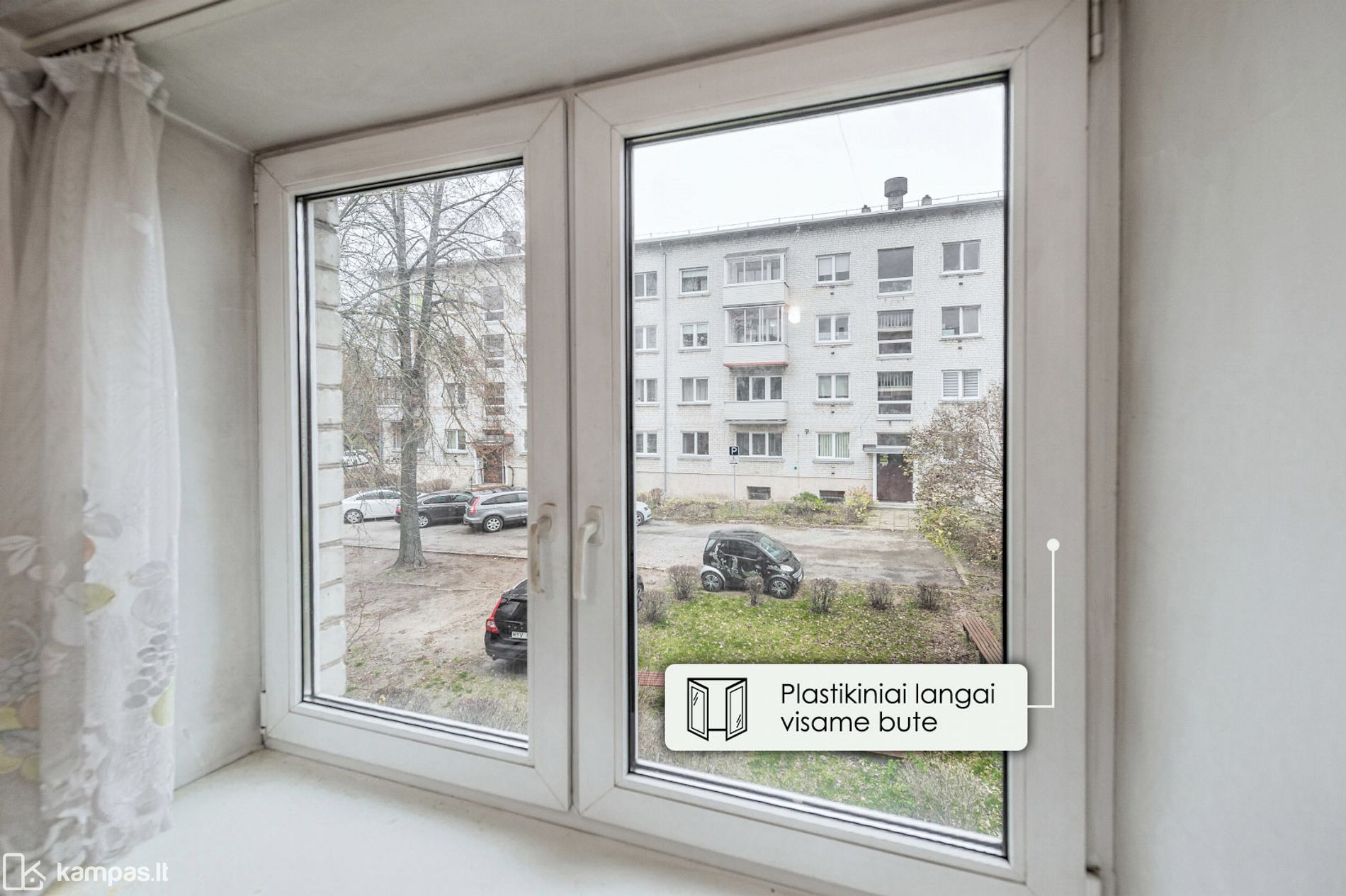 - Vaizdas pro langus į žaliuojantį vidinį kiemą;