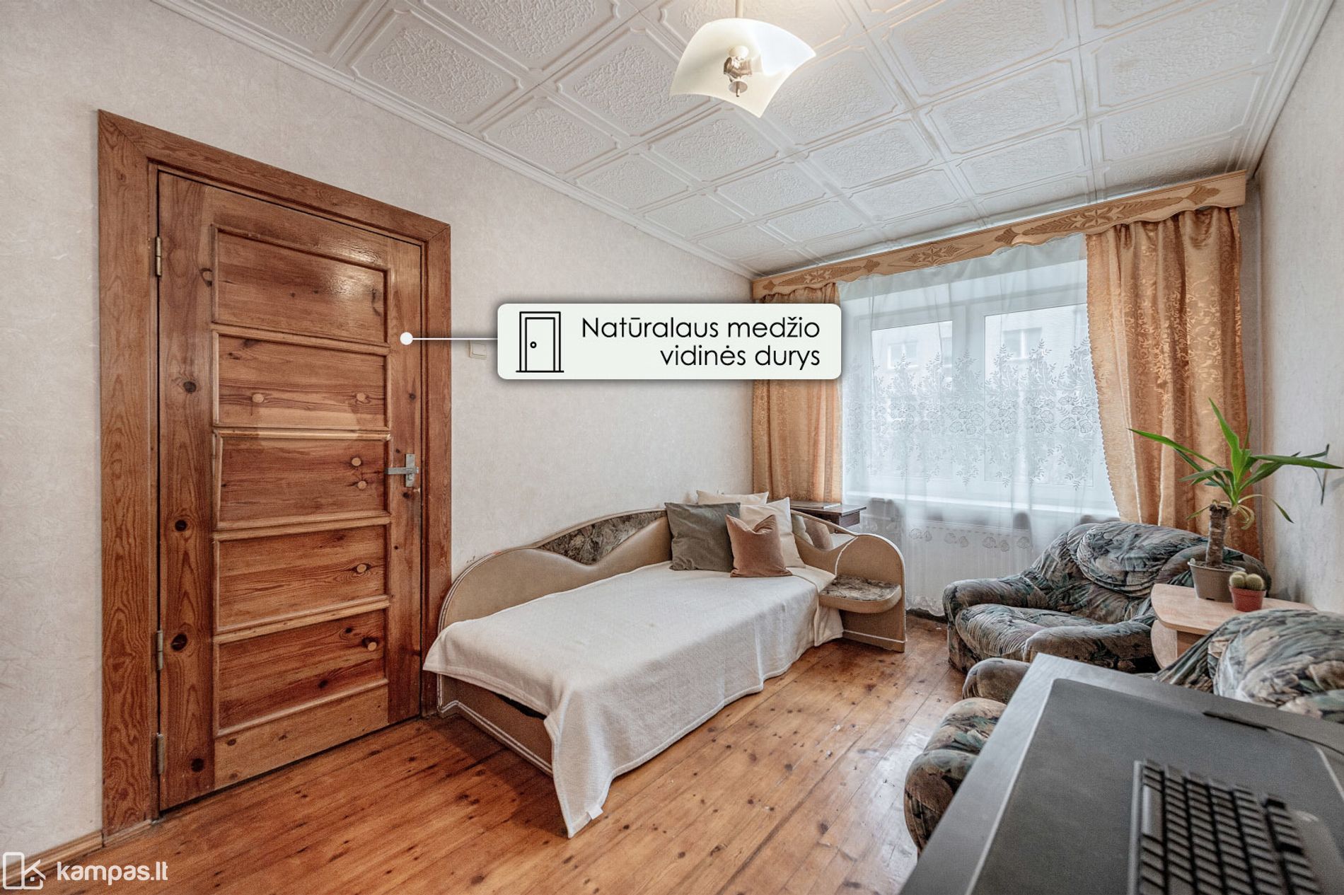 - Autentiškos medinės vidinės durys kambariuose;