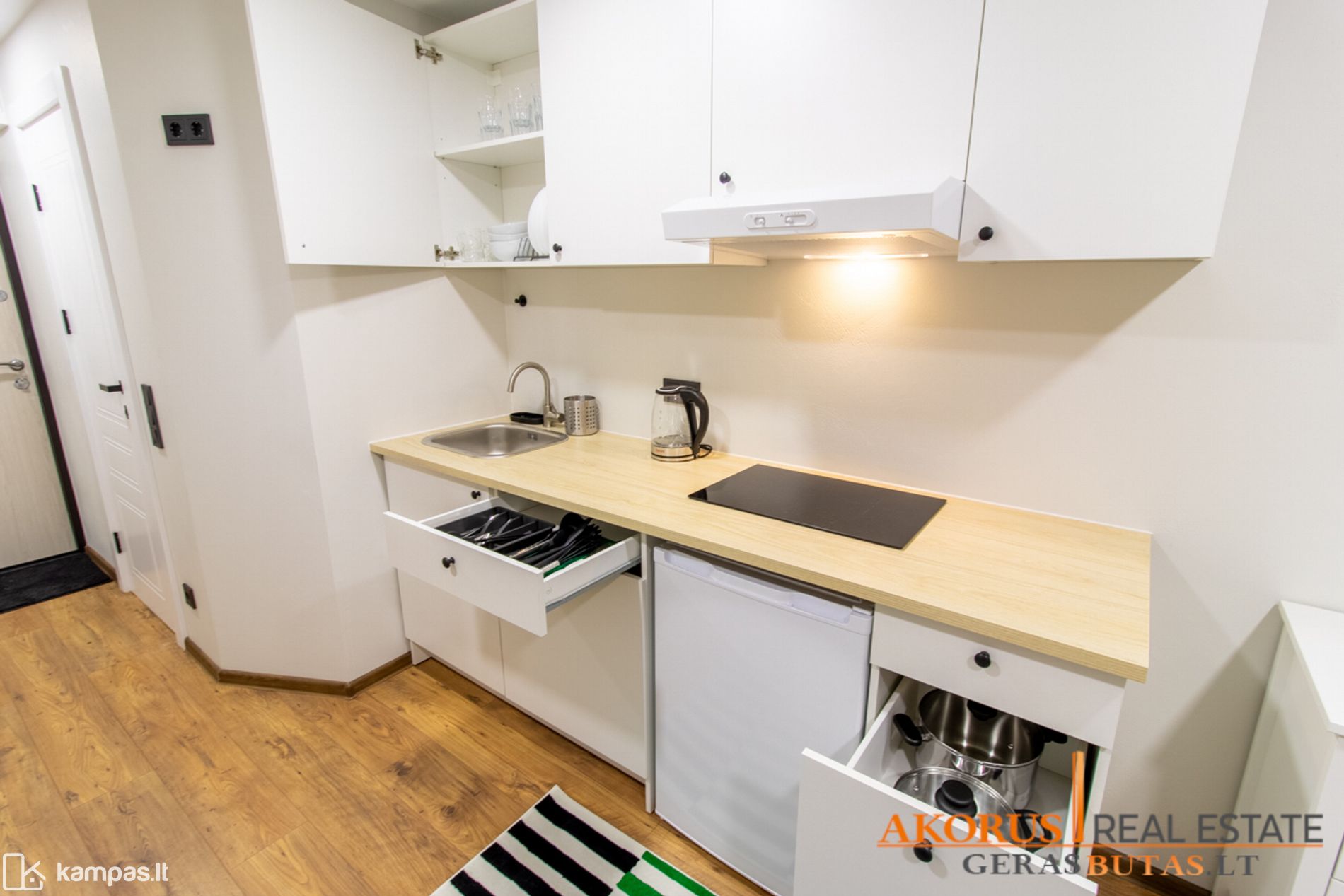 - iki smulkmenų įrengtas (virtuvės reikmenys, šviestuvai, dekoracijos ir t.t.);
