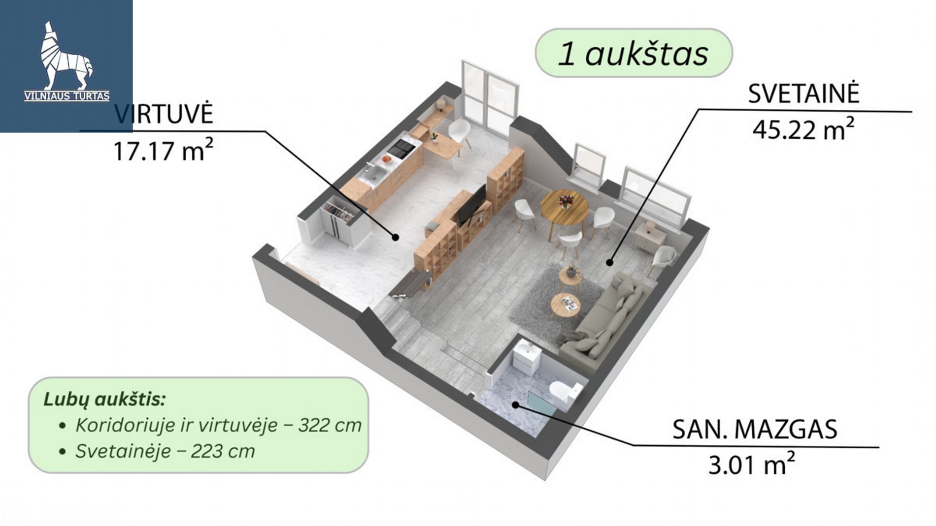 • Virtuvė atskirta nuo svetainės – ideali šeimos ar draugų erdvė;