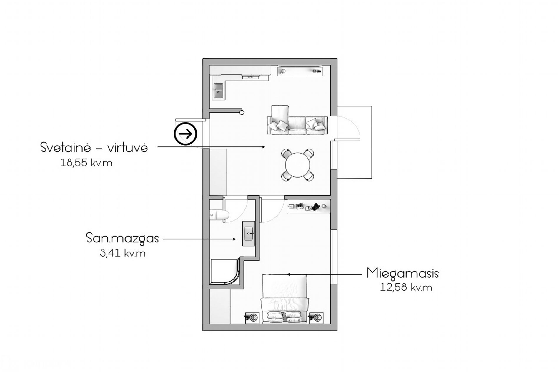 - Virtuvė kartu su svetaine;