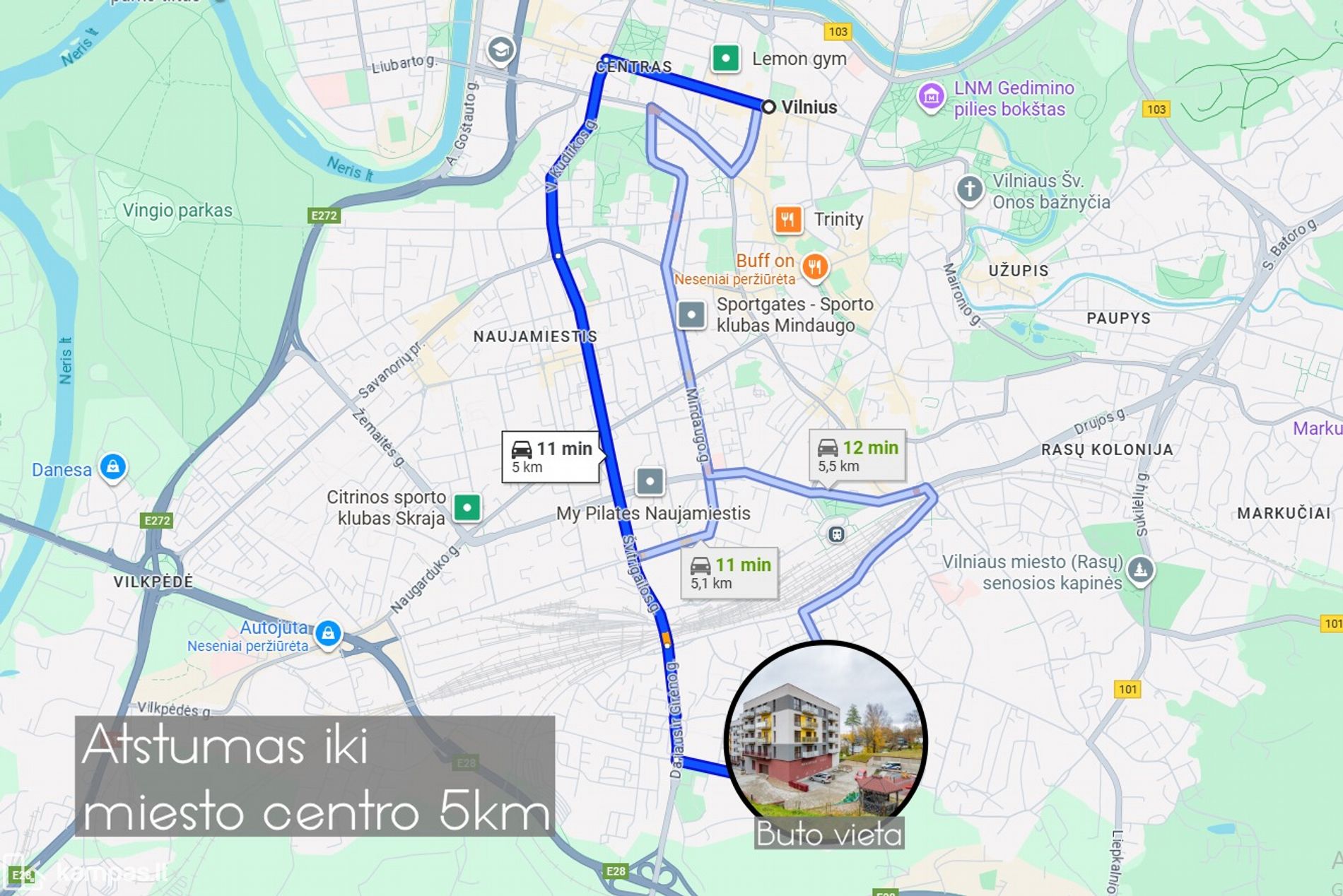 - Iki Vilniaus miesto centro/Senamiesčio tik 2,9 km arba 5 min kelio automobiliu.