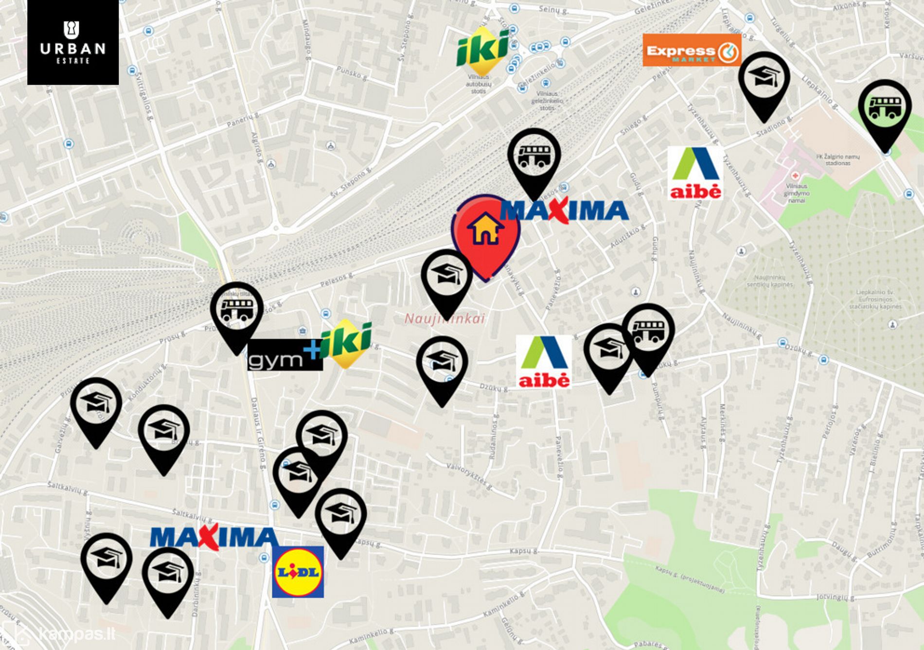 - Patogi vieta norintiems akimirksniu pasiekti visus reikalingiausius objektus: prie pat yra prekybos centrai, viešojo transporto stotelės, mokymo bei gydymo įstaigos, sporto klubai.