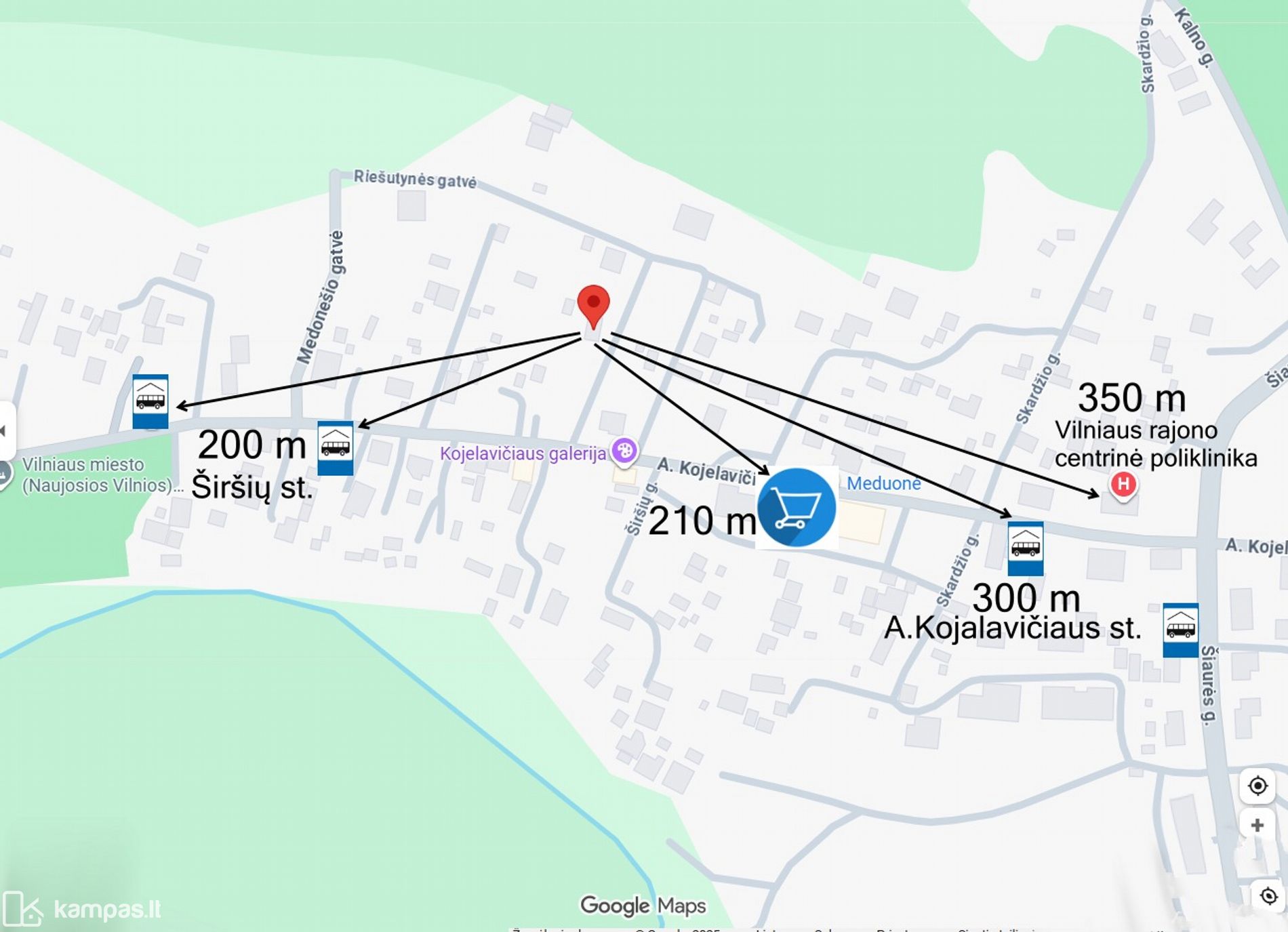 Iki artimiausios autobusų stotelės ~ 200 m;