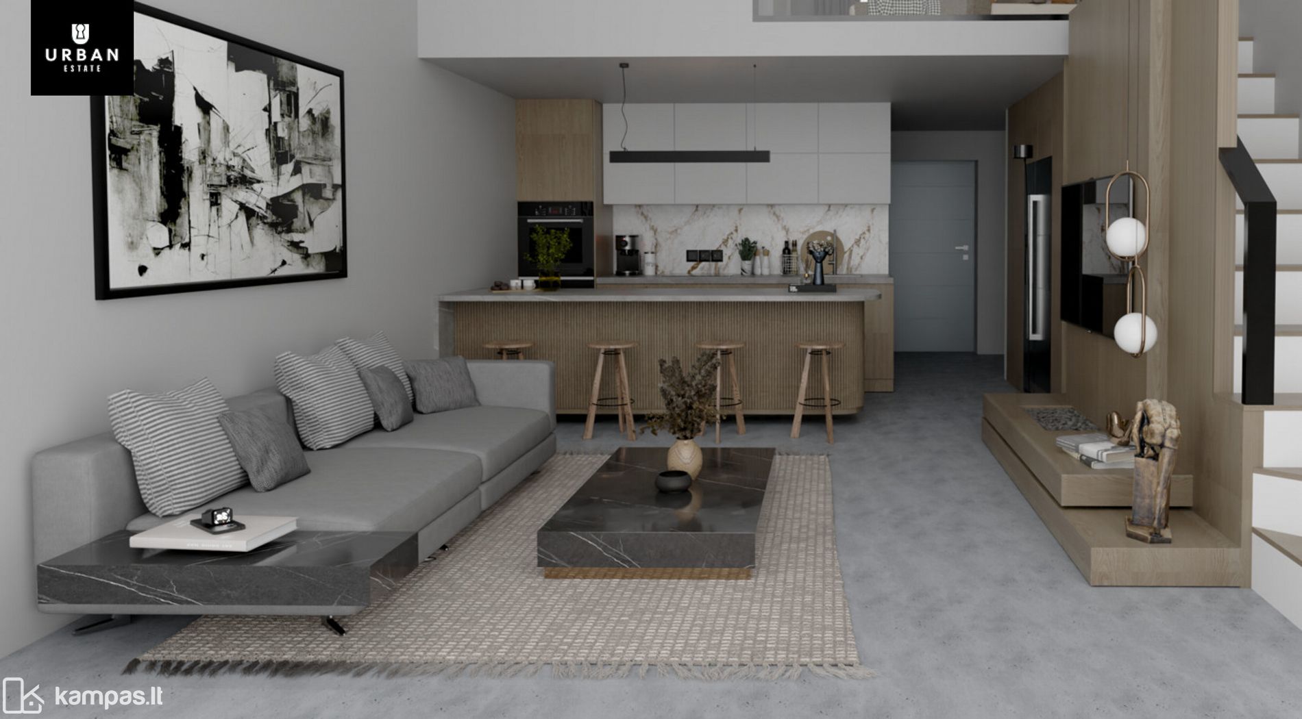 - Erdvės pojūtis: Butai per du aukštus, su svetainės lubomis 5 m aukščio.