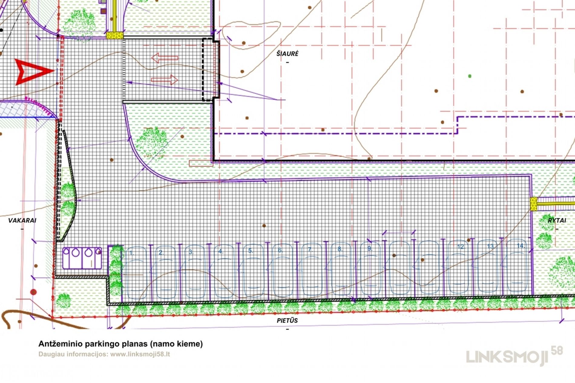 - Požeminis ir antžeminis parkingas su pakankamu vietų skaičiumi, suteikiantis gyventojams patogią ir saugią automobilių laikymo vietą;