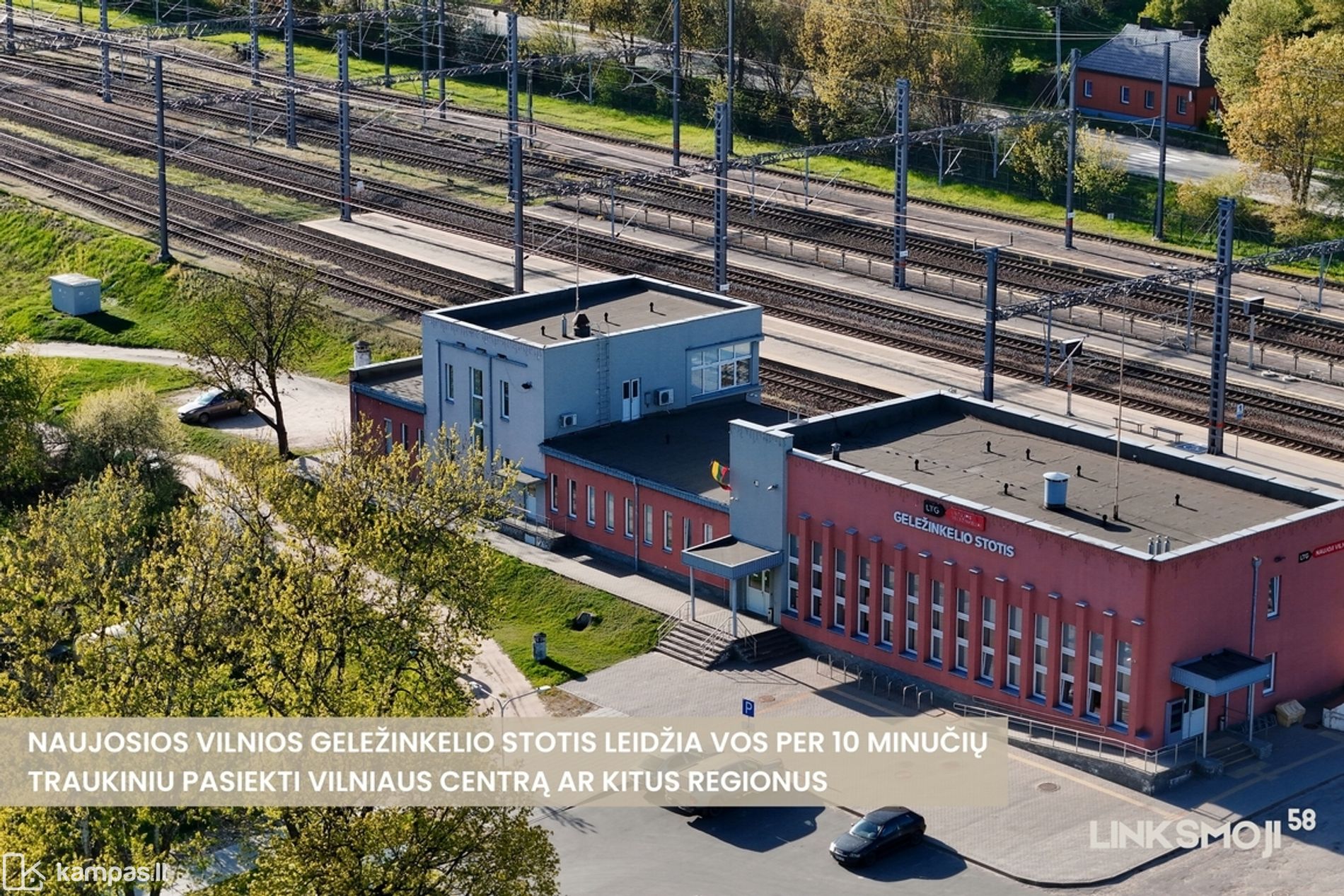 - Geležinkelio stotis – Naujosios Vilnios traukinių stotis leidžia vos per 10 minučių traukiniu pasiekti Vilniaus centrą ar kitus regionus;