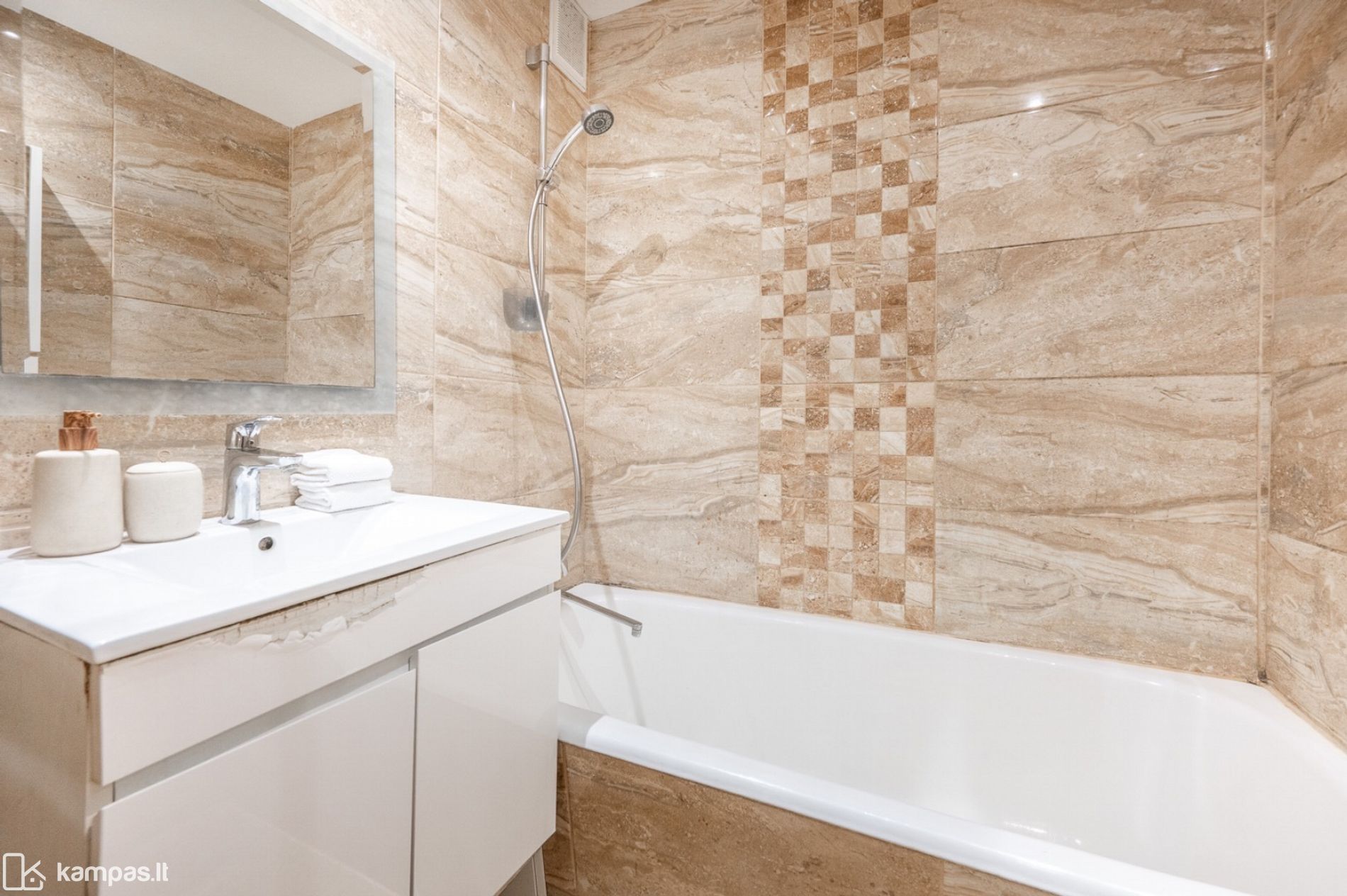 • Sienos – dažytos, tapetai; vonios kambaryje – plytelės;