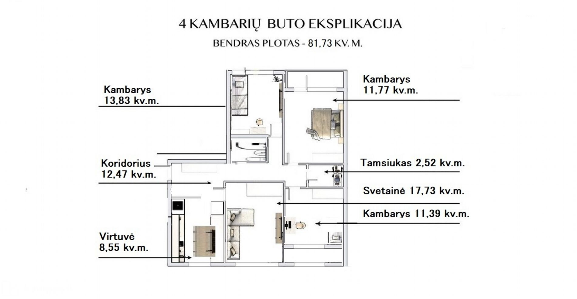 - Kambarys 13,83 kv. m;