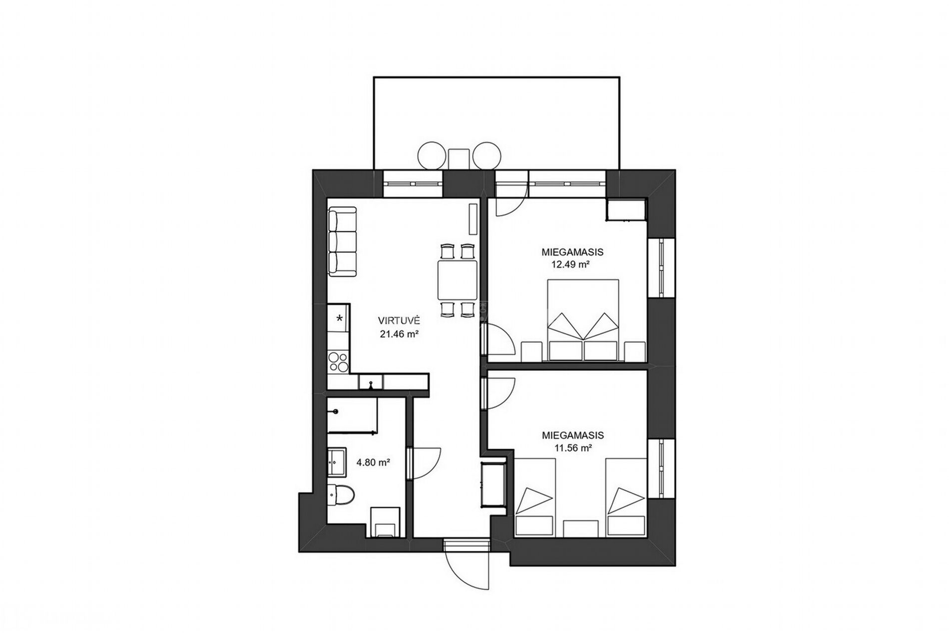 • 2 miegamieji kambariai ir erdvus vonios kambarys.
