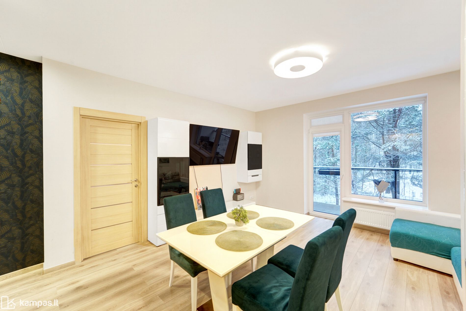 Vos išėję į balkoną pajusite gryną miško orą – pušys prasideda vos už kelių metrų. Čia suderinta gamtos ramybė ir miesto komfortas: parduotuvės, darželiai ir viešasis transportas pasiekiami per kelias minutes pėsčiomis.
