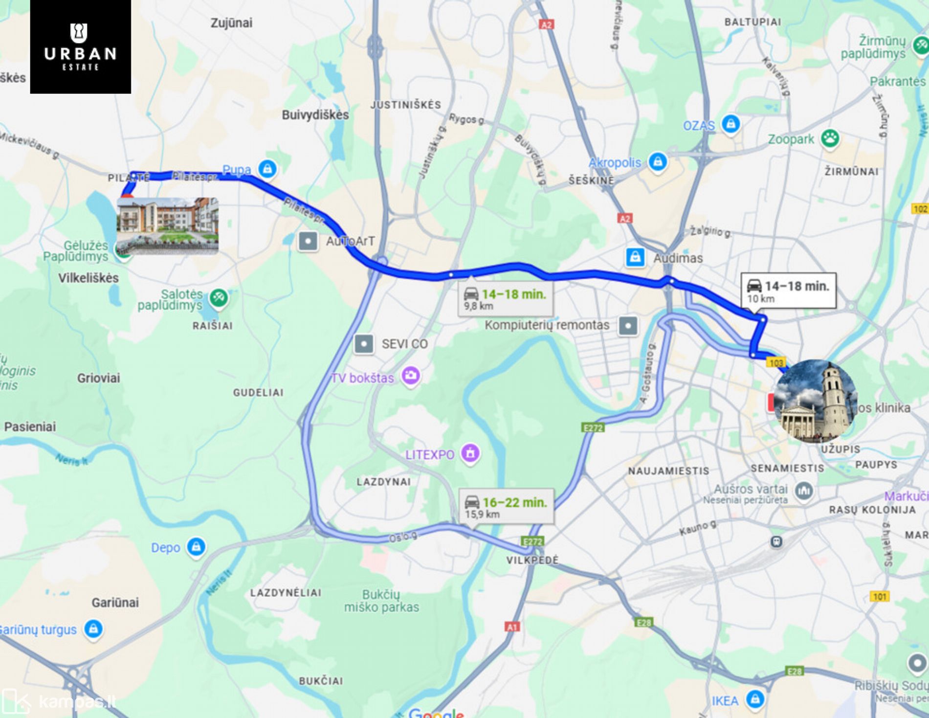 ~2.1 km iki prekybos centro "IKI".