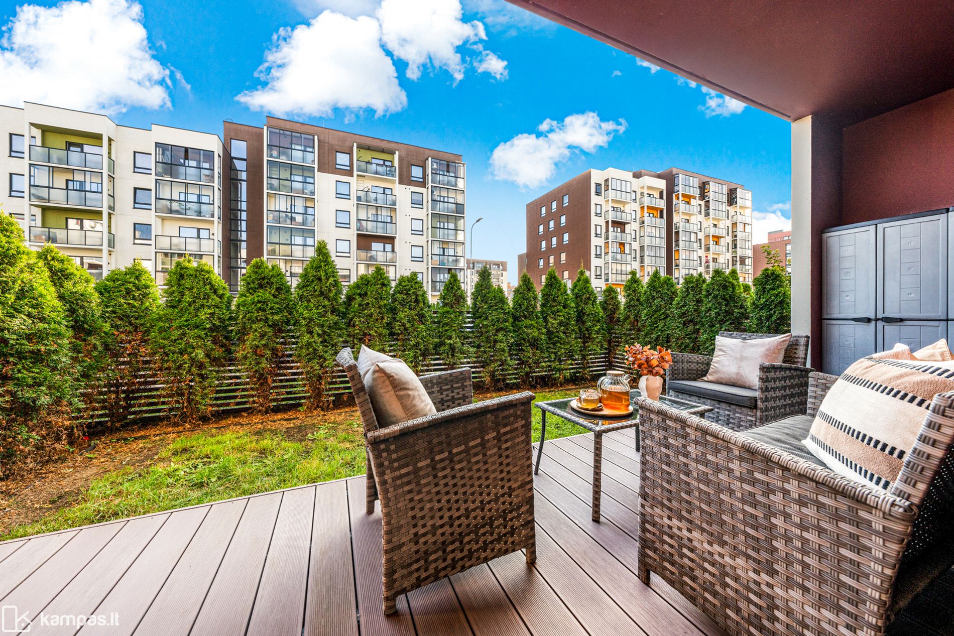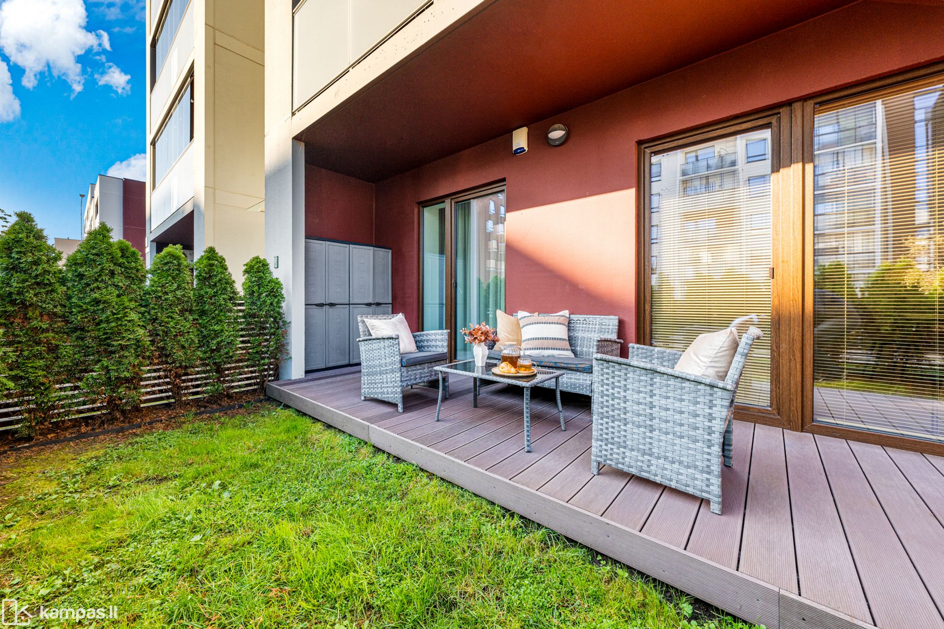 PARDUODAMAS ŠVIESUS IR KOKYBIŠKAI ĮRENGTAS 2 KAMBARIŲ BUTAS SU TERASA BEI ERDVIU KIEMELIU, TOLMINKIEMIO G., PILAITĖJE!