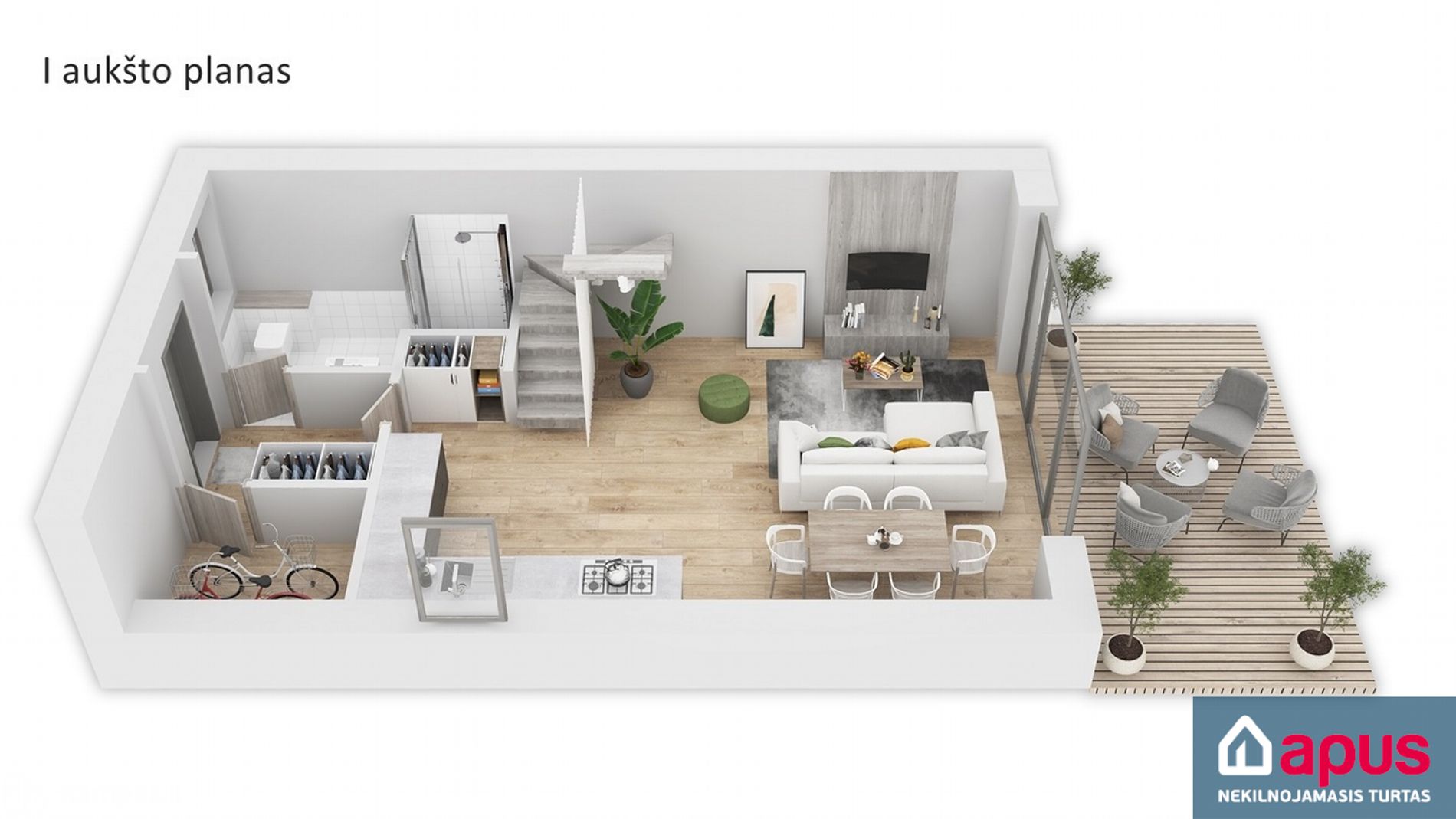 • Erdvūs kiemas su 12 kv. m medine terasa.